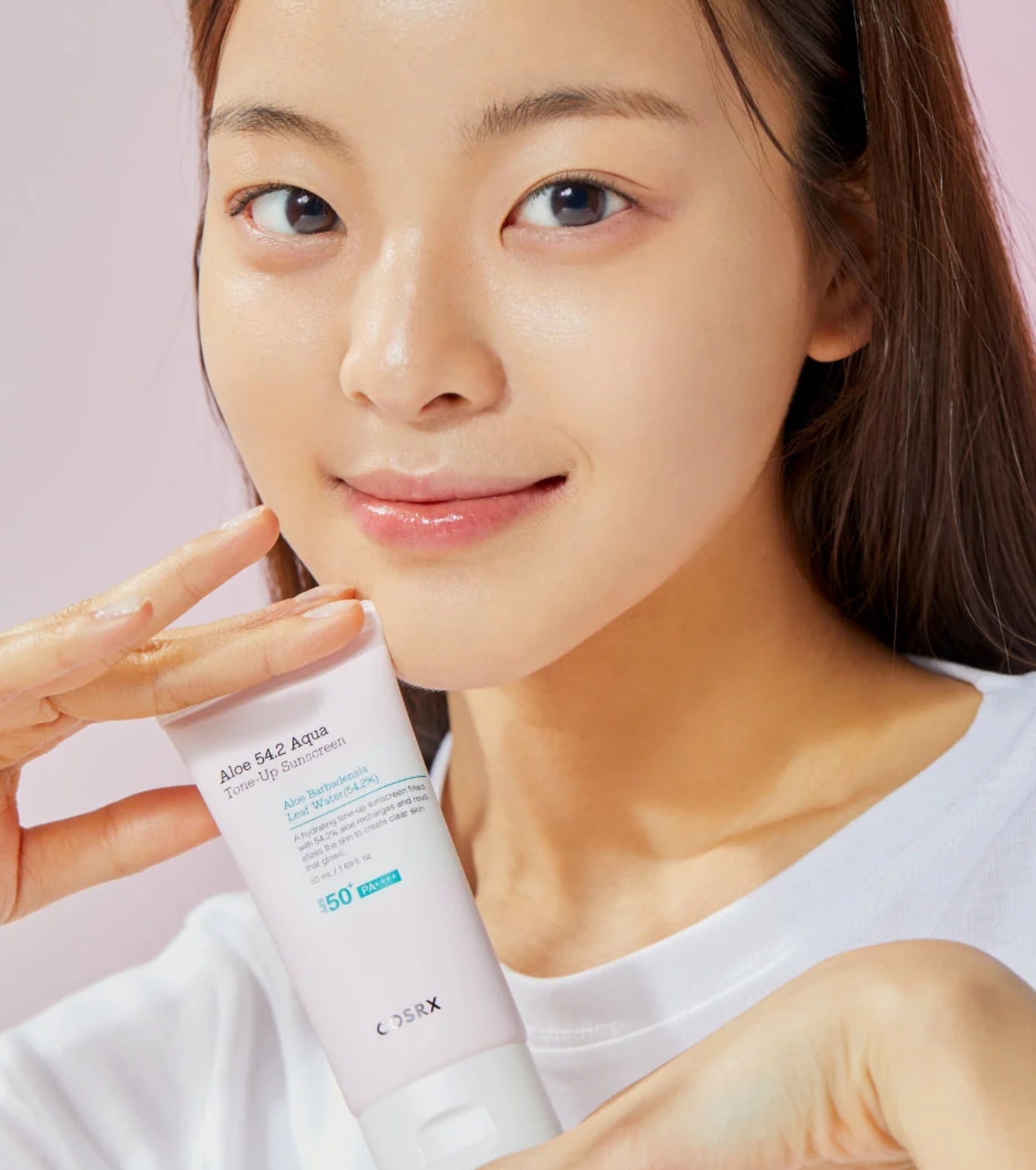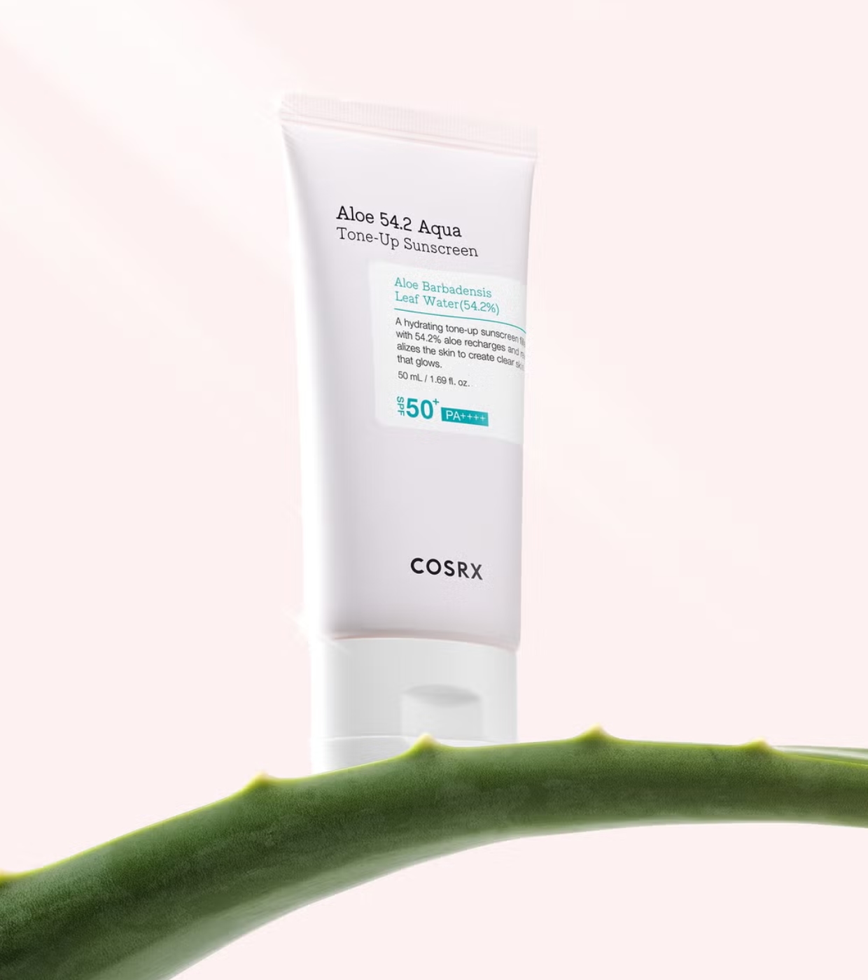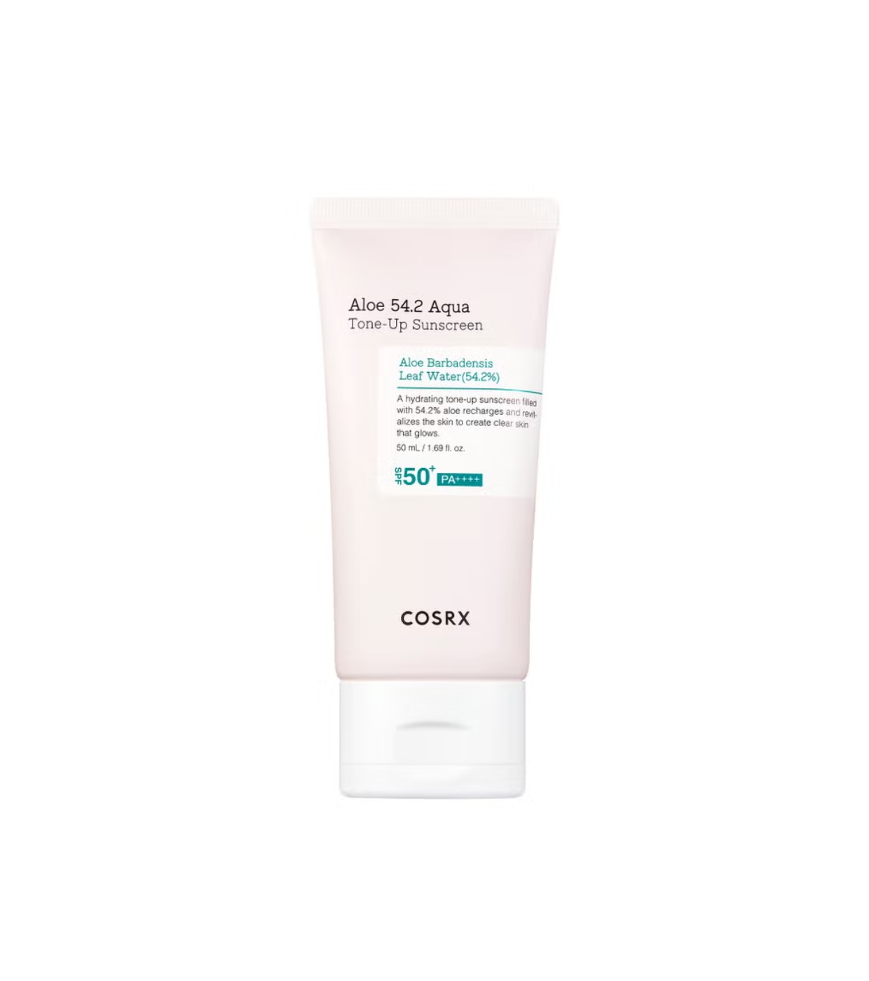 Die leichte Sonnencreme SPF50+ Aloe 54.2 Aqua von COSRX mit gleichmäßigem Teint schützt die Haut vor UV-Strahlen und sorgt gleichzeitig für ein strahlendes und natürliches Finish.