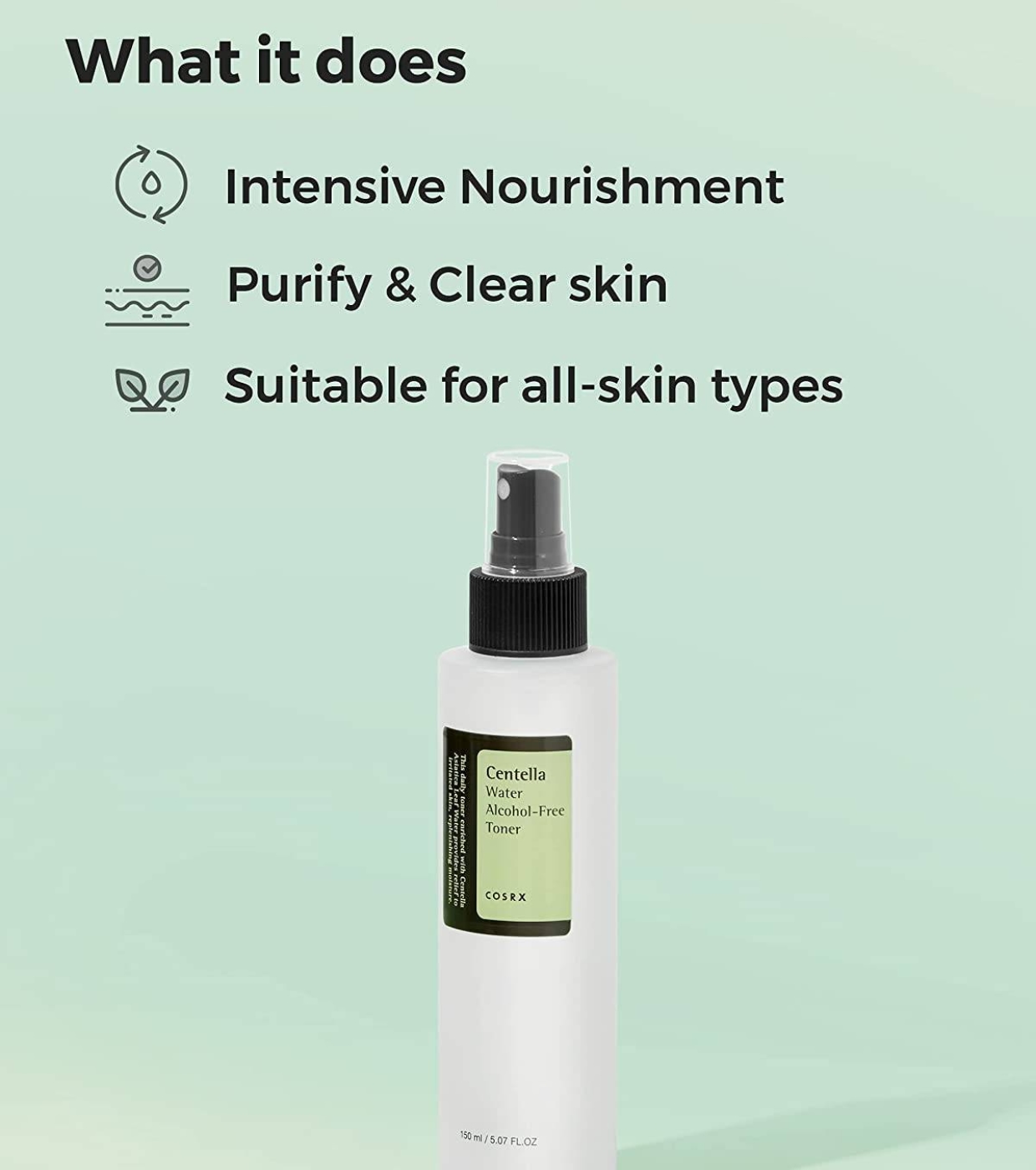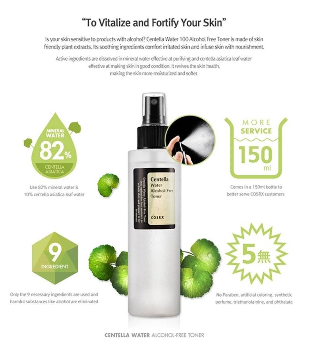 Mit Cosrx Centella Water Alcohol-Free Toner erhält Ihre Haut eine intensive Pflege, die Feuchtigkeit, Reparatur und Schutz kombiniert und sie stärker, elastischer und revitalisiert macht.