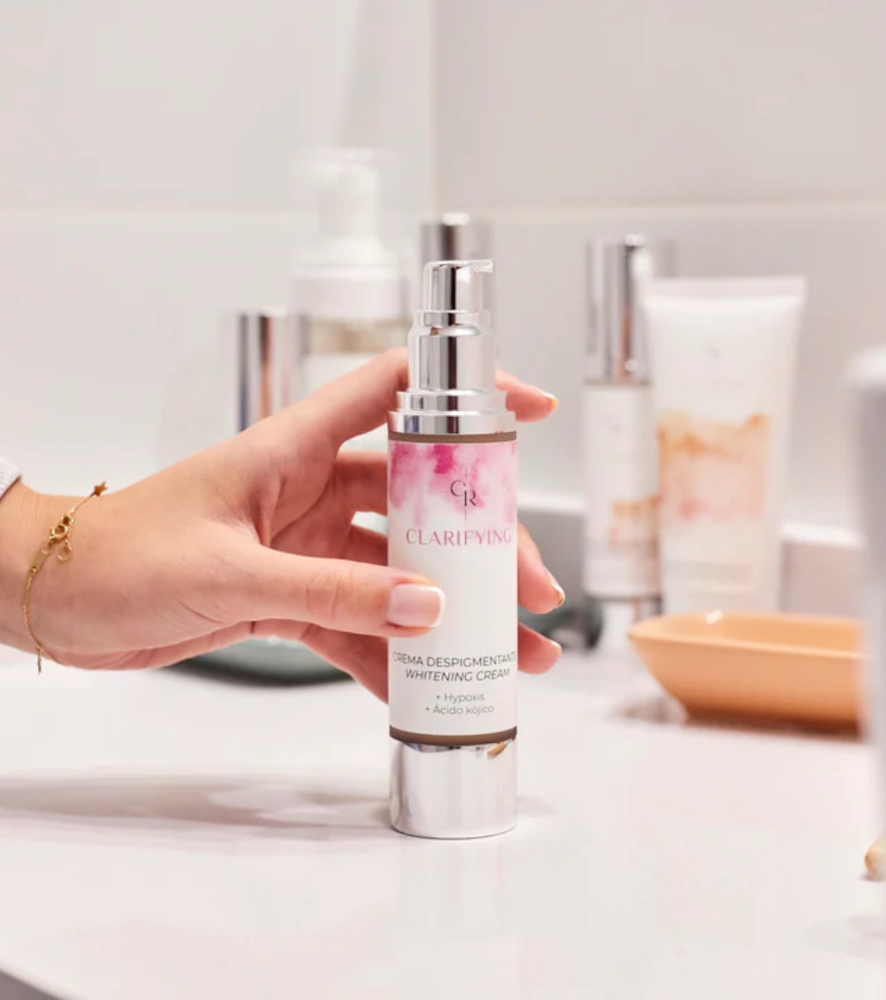 Die Depigmentierungscreme von CR Cosmetics ist eine fortschrittliche Formel zur Bekämpfung hartnäckiger Hyperpigmentierung und zur Reduzierung von Flecken unterschiedlicher Herkunft wie Melasma, Lentigines solares, postinflammatorischer Hyperpigmentierung (PIH) und Akneflecken.