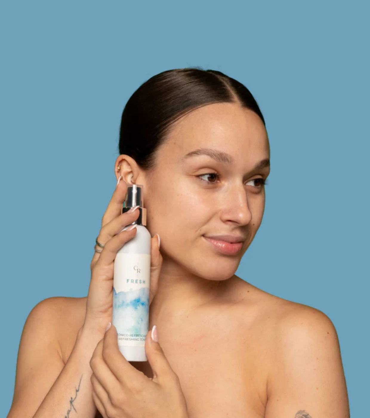 Sie können unseren Toner auch tagsüber als erfrischendes und revitalisierendes Gesichtsspray verwenden, insbesondere in heißen oder trockenen Klimazonen. Sprühen Sie dazu einfach einen feinen Tonernebel auf Ihr Gesicht und lassen Sie ihn natürlich trocknen.