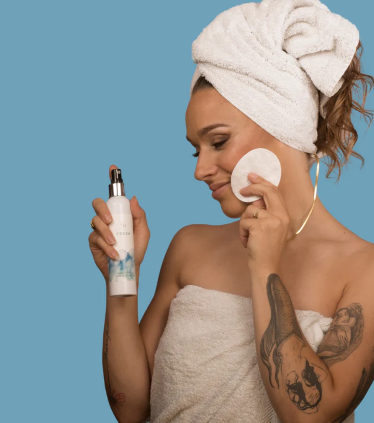 Tragen Sie das Wattepad oder Make-up-Entferner-Pad mit kreisenden oder aufwärts gerichteten Bewegungen sanft auf Ihre Haut auf.
