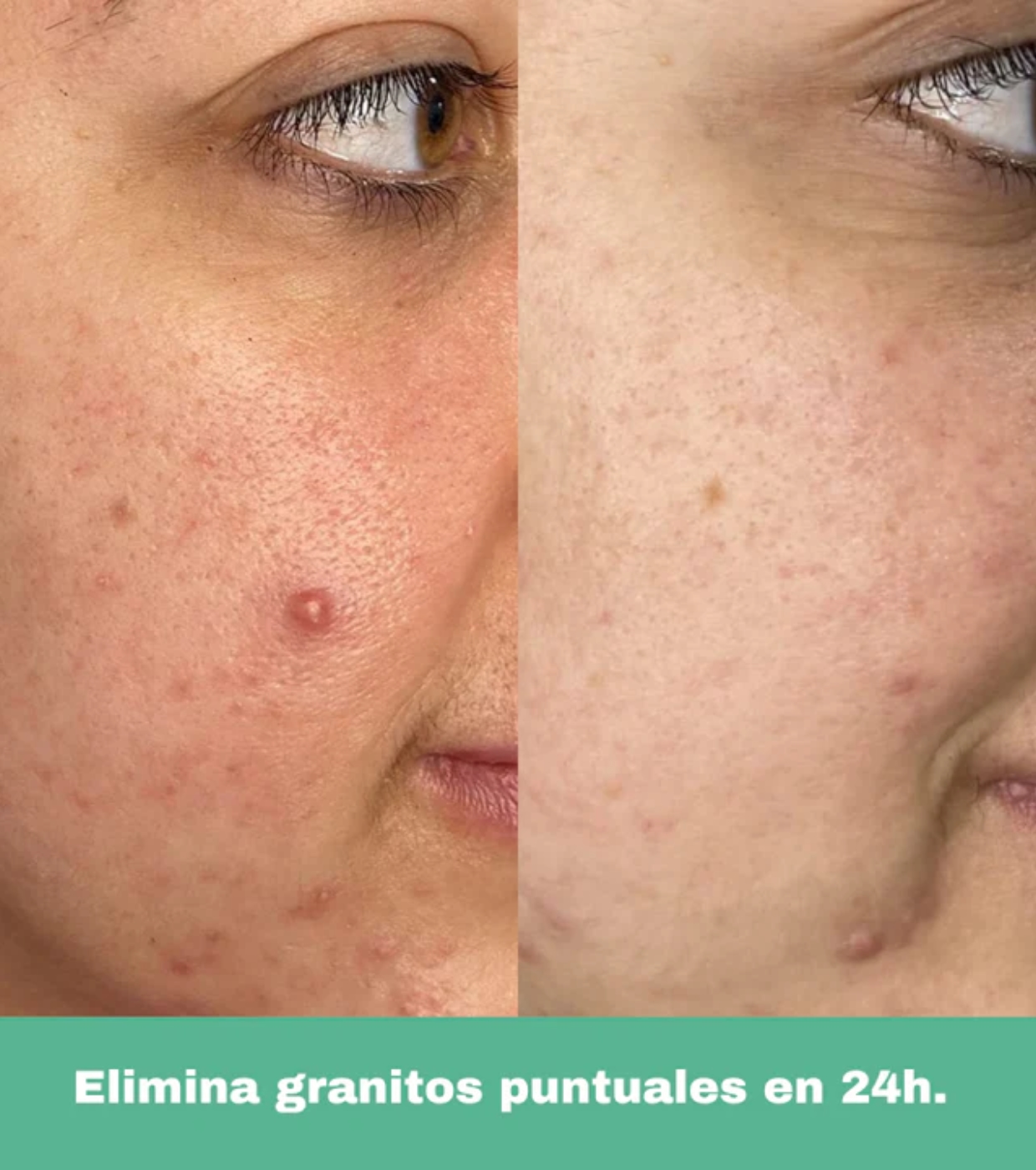 Dank seiner hohen desinfizierenden und antioxidativen Wirkung trägt diese lokale Behandlung dazu bei, die Ölproduktion zu regulieren und die Hyperpigmentierung nach Akne zu verbessern, wodurch die Haut regeneriert wird, ohne sie auszutrocknen.