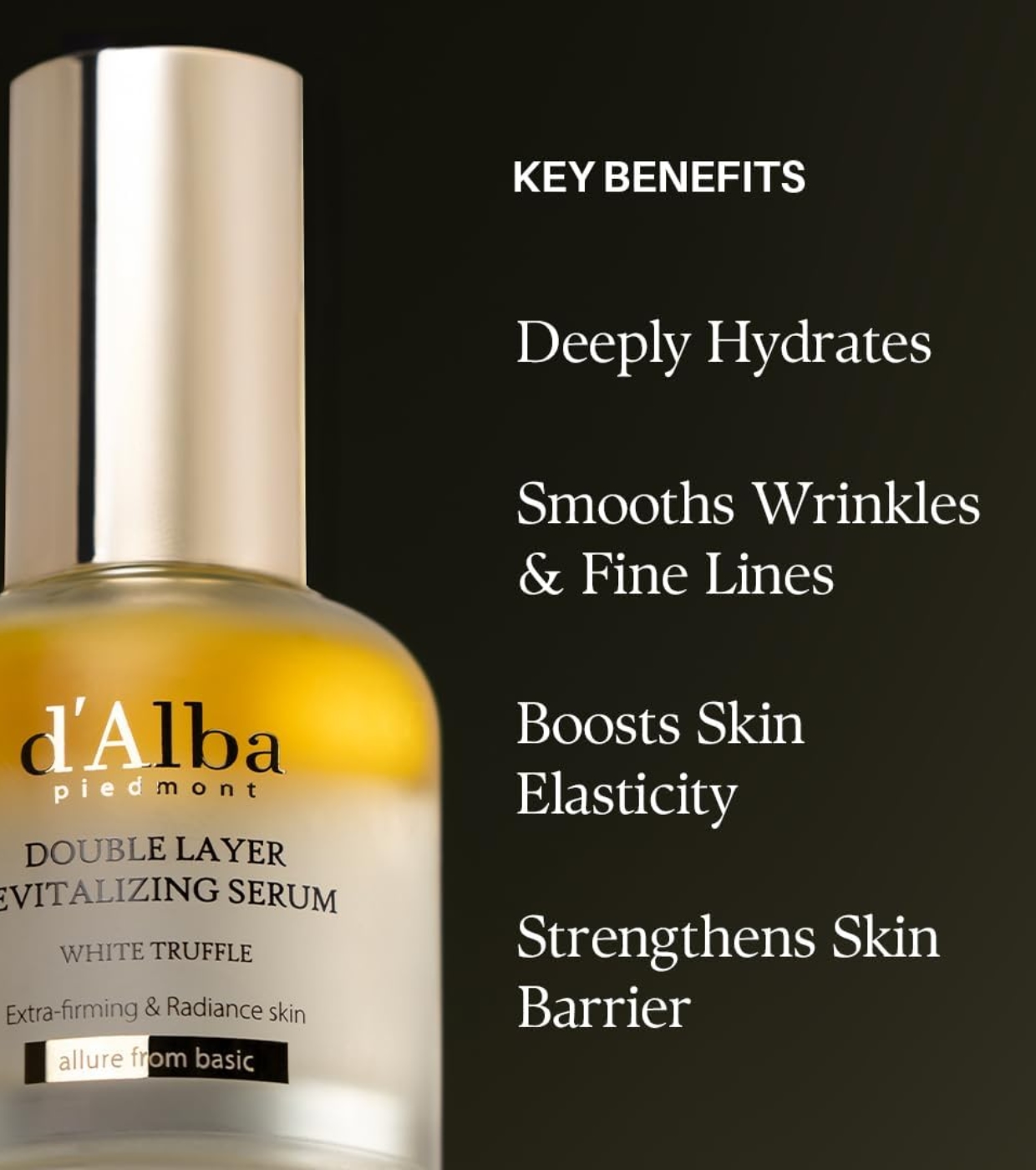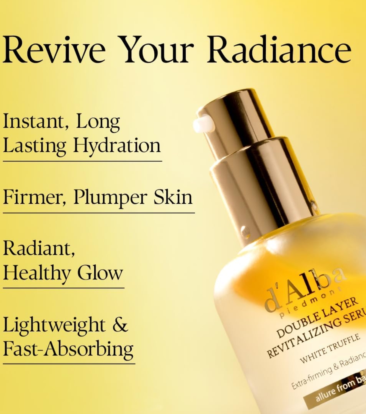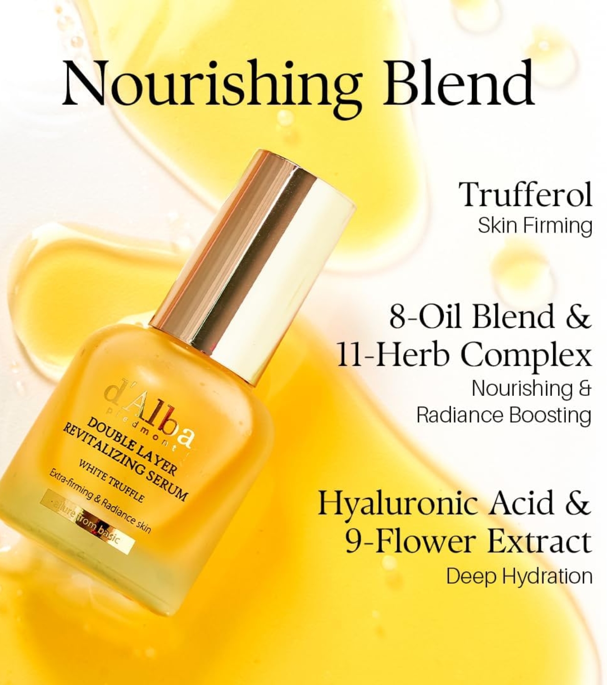 D’Alba White Truffle Double Layer Revitalizing Serum ist ein 2-in-1-Revitalisierendes Serum, das 70 % leichte Essenz mit 30 % pflegenden Ölen kombiniert, um die Haut bei jeder Anwendung zu verwandeln.