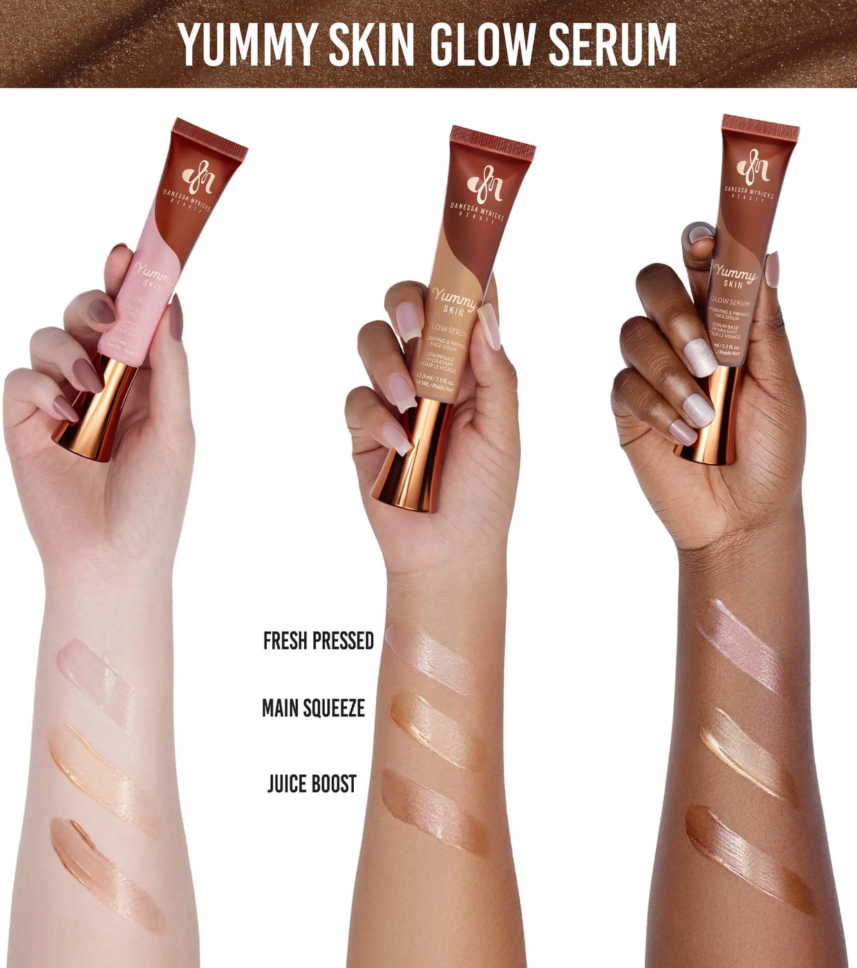 Diese aufhellende Grundierung Yummy Skin Glow Serum von Danessa Myricks enthält antioxidantienreiche Fruchtextrakte wie Kiwi, Pitaya, Feige und Granatapfel, um die Haut vor Umwelteinflüssen zu schützen.