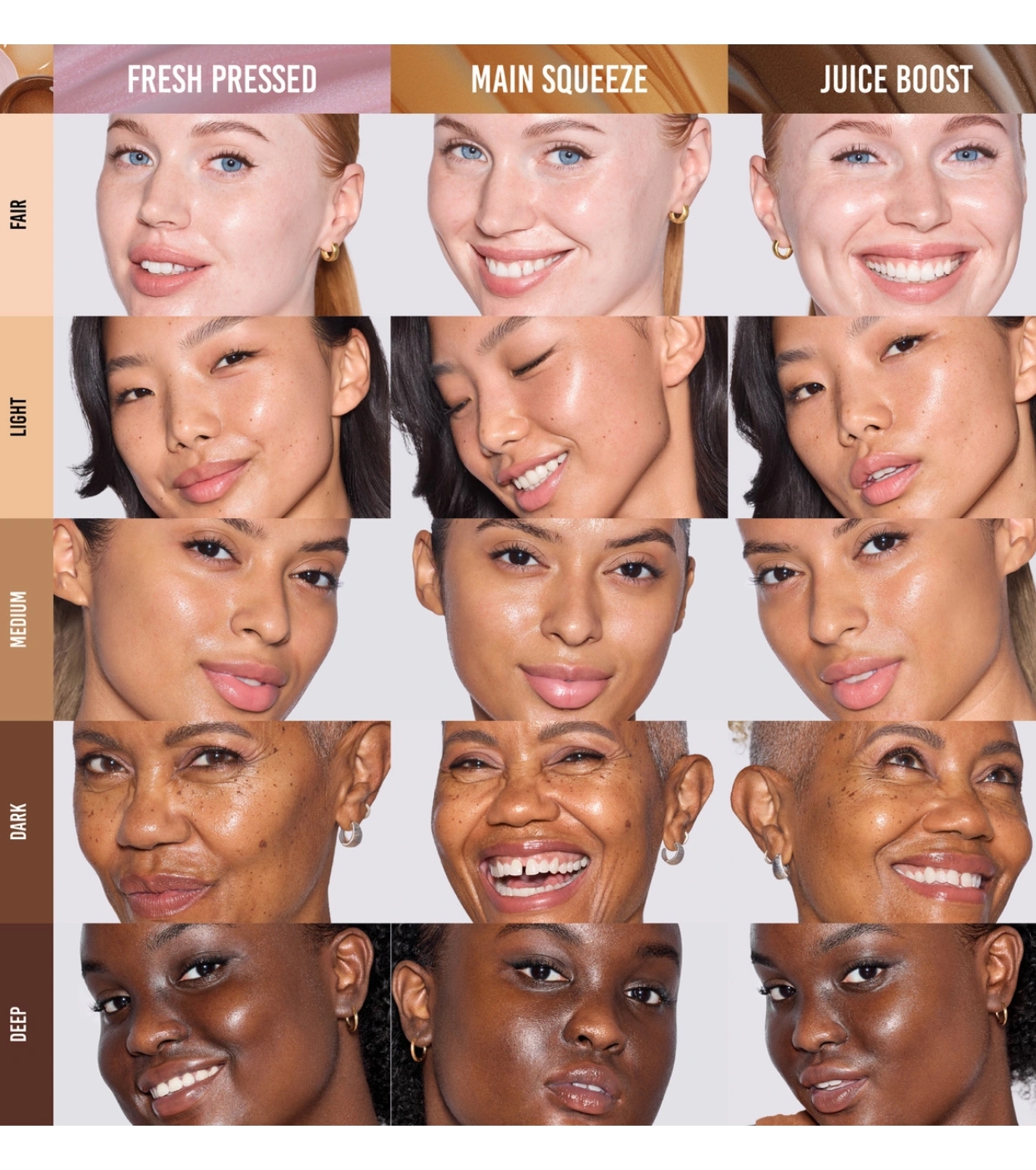 Aqua/Water/Eau, Glycerin, Propylene Glycol, 1,3-Butanediol, Glycereth-26, Olive Squalane, Niacinamide, 1,2-Hexanediol, Cetyl Ethylhexanoate, Ficus Carica (Fig) Fruit Extract, Punica Granatum Fruit Extract, Hylocereus Undatus Fruit Extract, Actinidia Chinensis (Kiwi) Fruit Extract, Fragaria Chiloensis (Strawberry) Fruit Extract, Zingiber Officinale (Ginger) Root Oil, Curcuma Longa (Turmeric) Root Oil, Curcumin, Linum Usitatissimum (Linseed) Seed Oil, Simmondsia Chinensis (Jojoba) Seed Oil, Chicory Root Extract, Sodium Hyaluronate, 3-O-Ethyl-Ascorbic Acid, Ammonium Acryloyldimethyltaurate/Beheneth-25 Methacrylate Crosspolymer, Butylene Glycol, Ethylhexylglycerin, Fragrance, Glycerin Stearate, Glyceryl Acrylate/Acrylic Acid Copolymer, Hydroxyacetophenone, Isohexadecane, Mica (Ci 77019), Phenoxyethanol, Polysorbate 80, Pvm/Ma Copolymer, Sodium Acrylate/Sodium Acryloyldimethyl Taurate Copolymer, Sorbitan Oleate, Titanium Dioxide (Ci 77891), Tocopheryl Acetate, Xanthan Gum