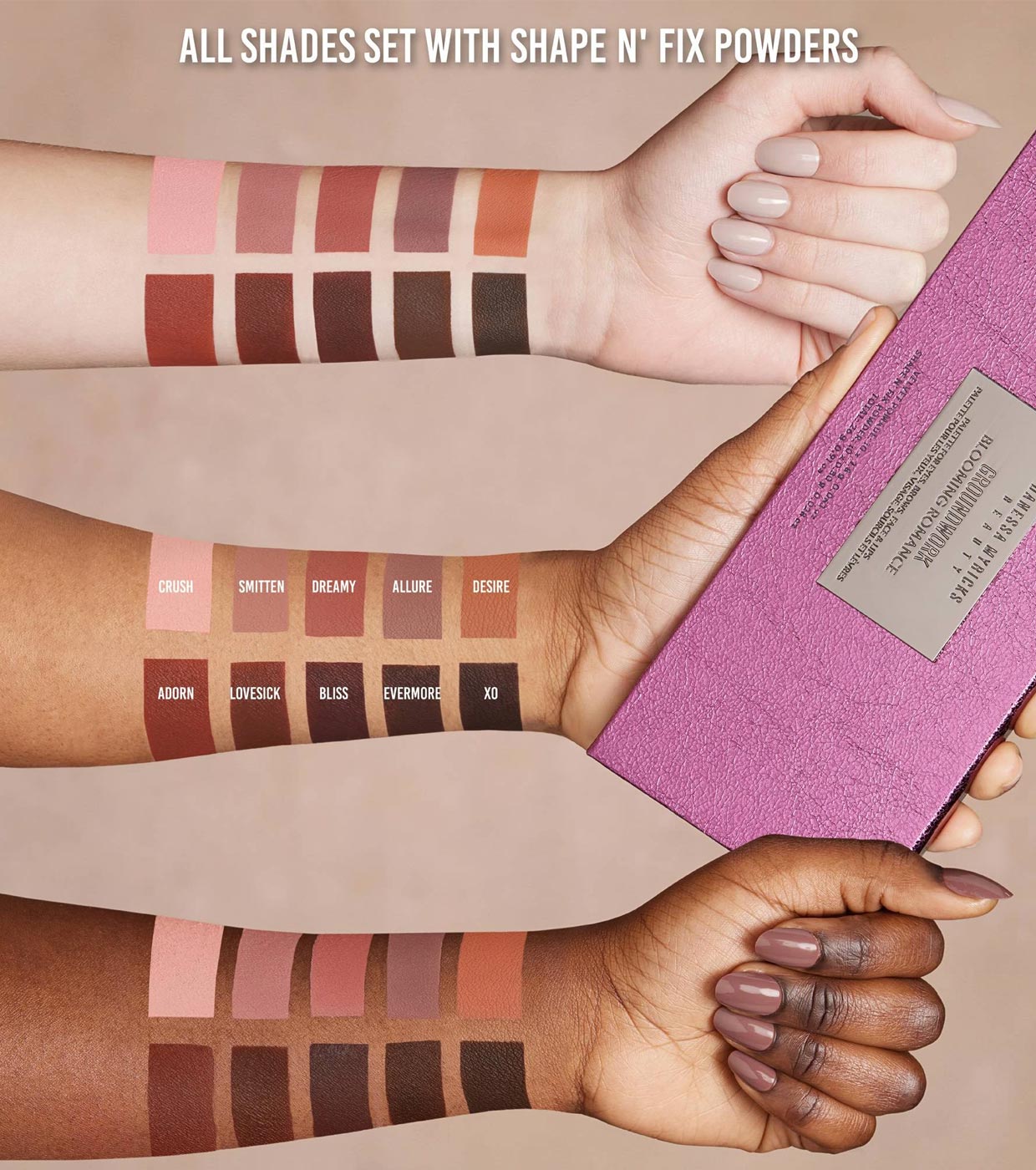 FOR SHAPE N’ FIX POWDER SHADES: CRUSH, SMITTEN, DREAMY, ALLURE, DESIRE, ADORN, LOVESICK, BLISS, EVERMORE, XO