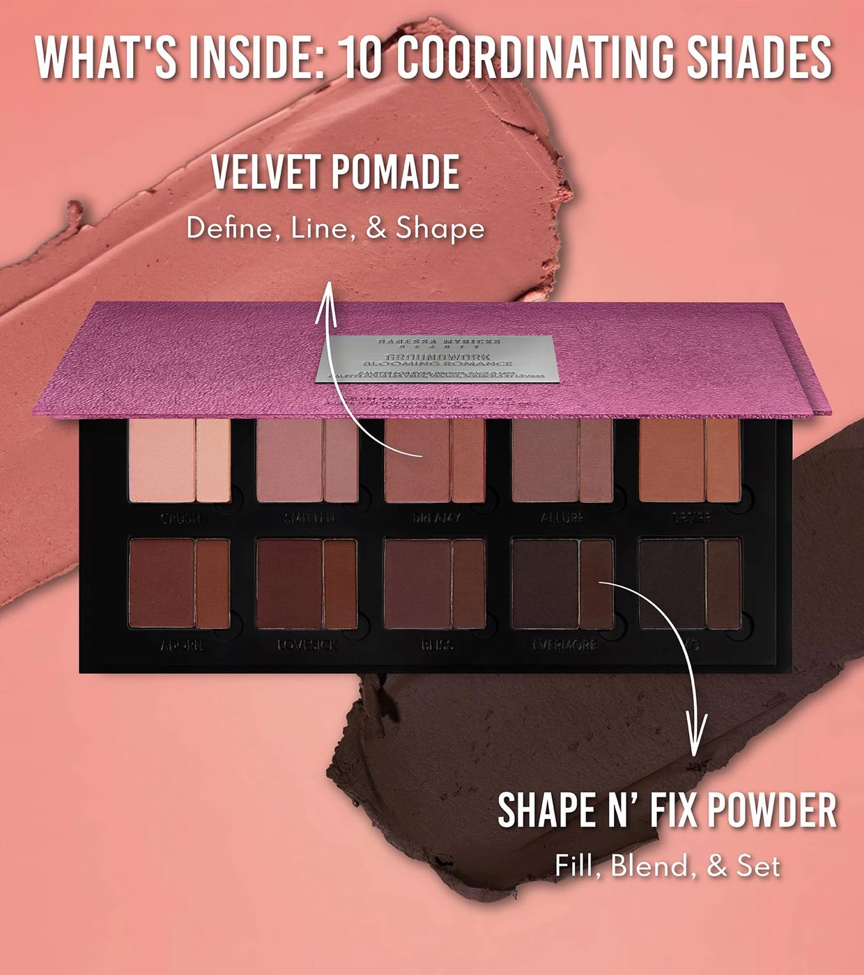 Groundwork Blooming Romance ist eine vielseitige Palette für Augen, Augenbrauen, Gesicht und Lippen, die Puder- und Creme-Puder-Texturen kombiniert.