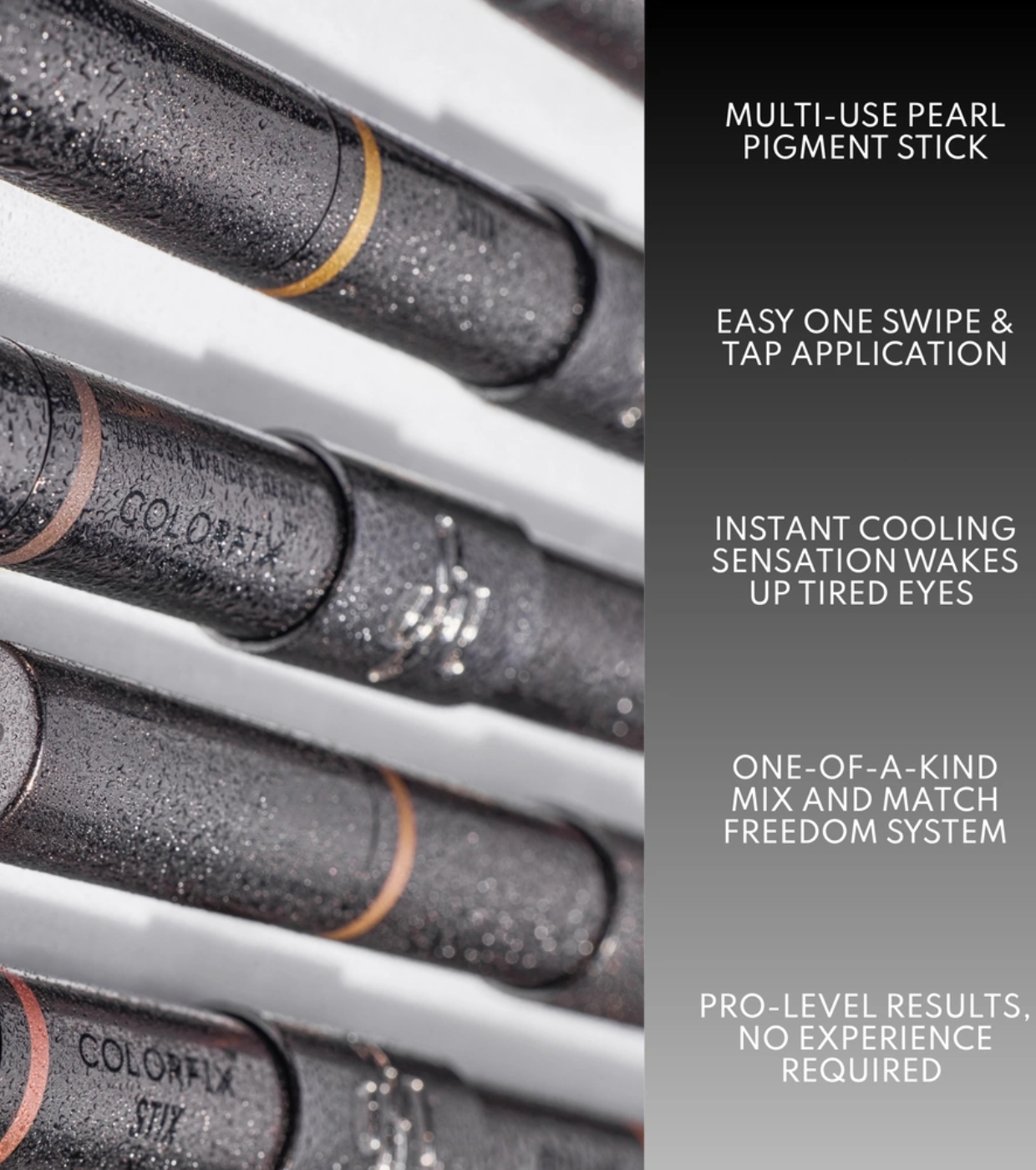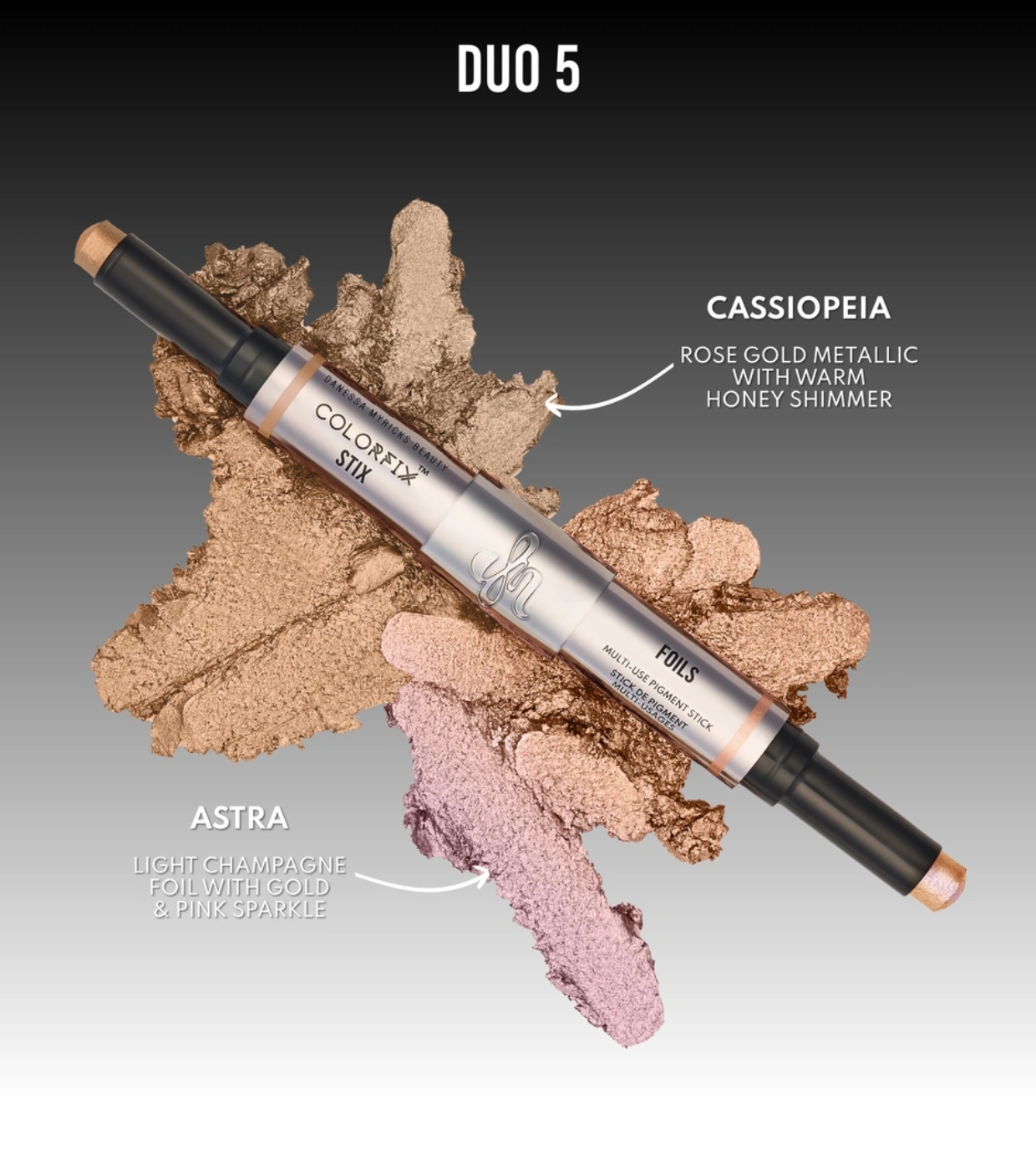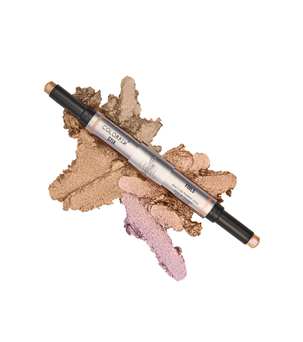Entdecken Sie das Colorfix Stick Duo von Danessa Myricks mit perlmuttartiger Textur und erfrischendem Effekt bei Kontakt, perfekt zum Auftragen auf Augen, Wangen und Lippen.