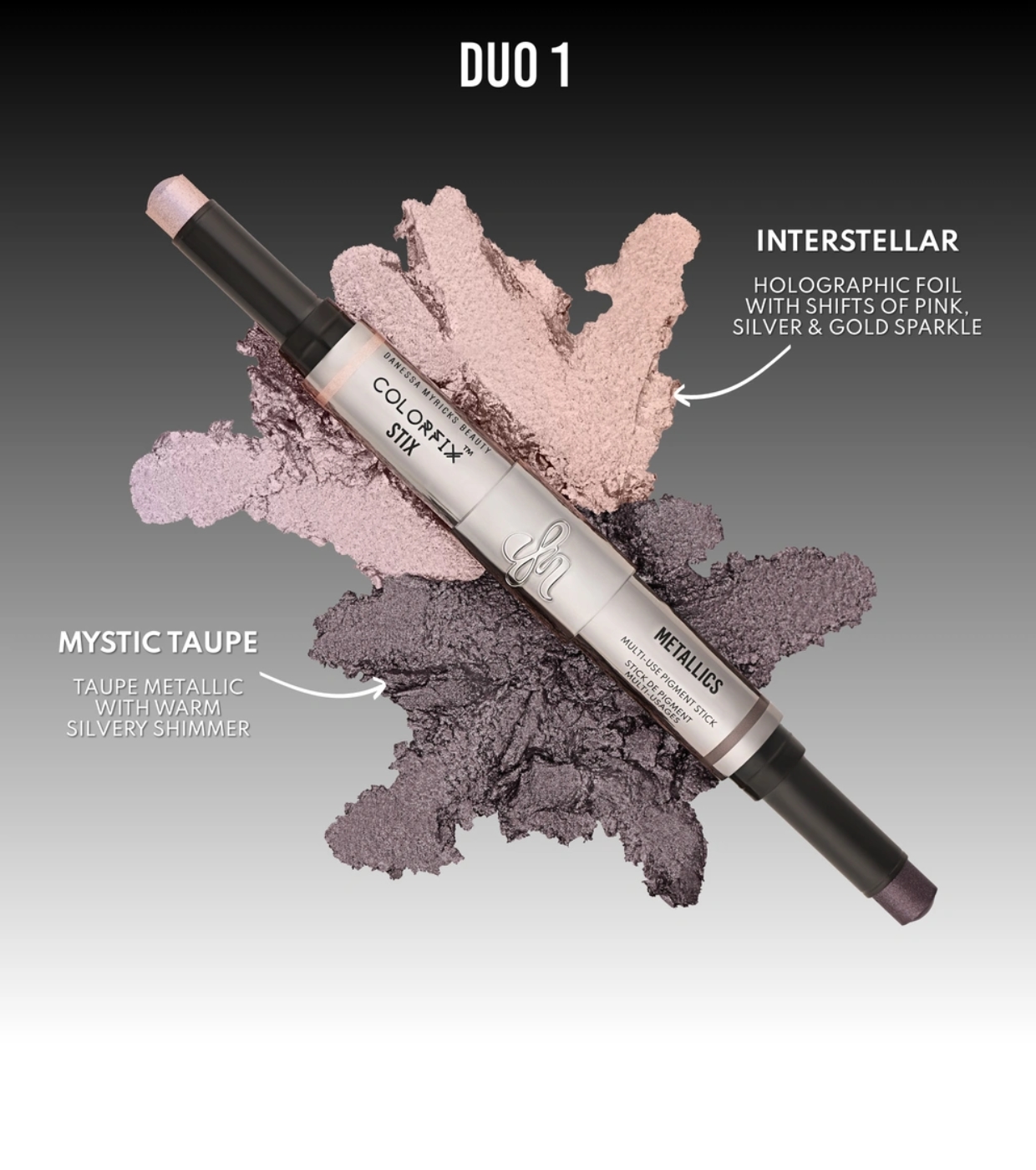Entdecken Sie das Colorfix Stick Duo von Danessa Myricks mit perlmuttartiger Textur und erfrischendem Effekt bei Kontakt, perfekt zum Auftragen auf Augen, Wangen und Lippen.
