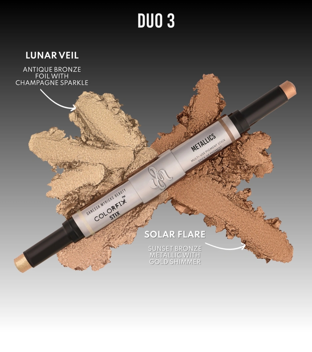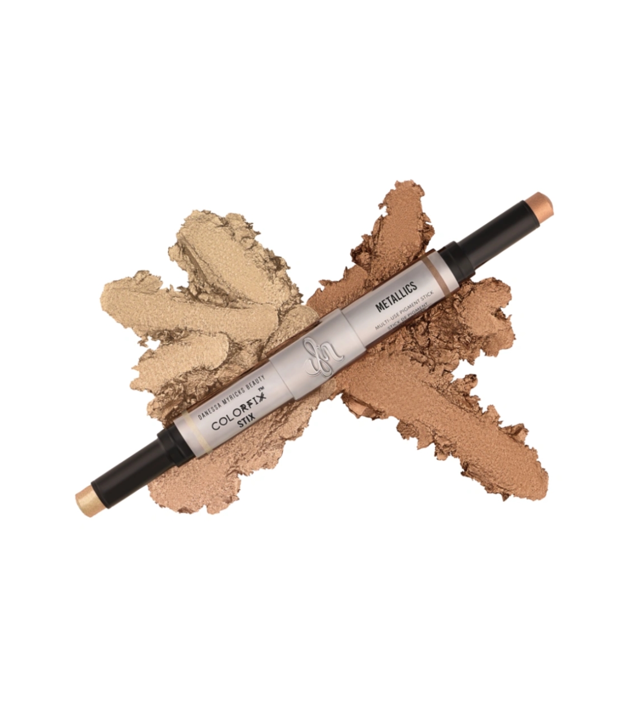 Entdecken Sie das Colorfix Stick Duo von Danessa Myricks mit perlmuttartiger Textur und erfrischendem Effekt bei Kontakt, perfekt zum Auftragen auf Augen, Wangen und Lippen.