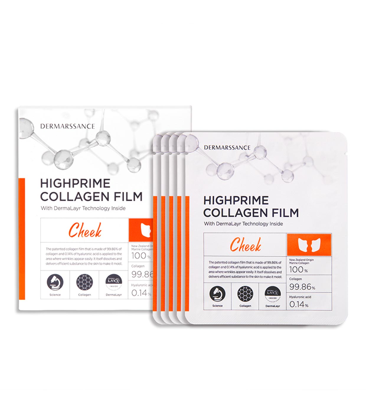 Highprime Kollagen-Wangenpflaster von Dermarssance. Sie haben eine Kollagenformel von 99,86 % und stellen die neueste kosmetische Technologie zur Verjüngung Ihrer Haut dar.