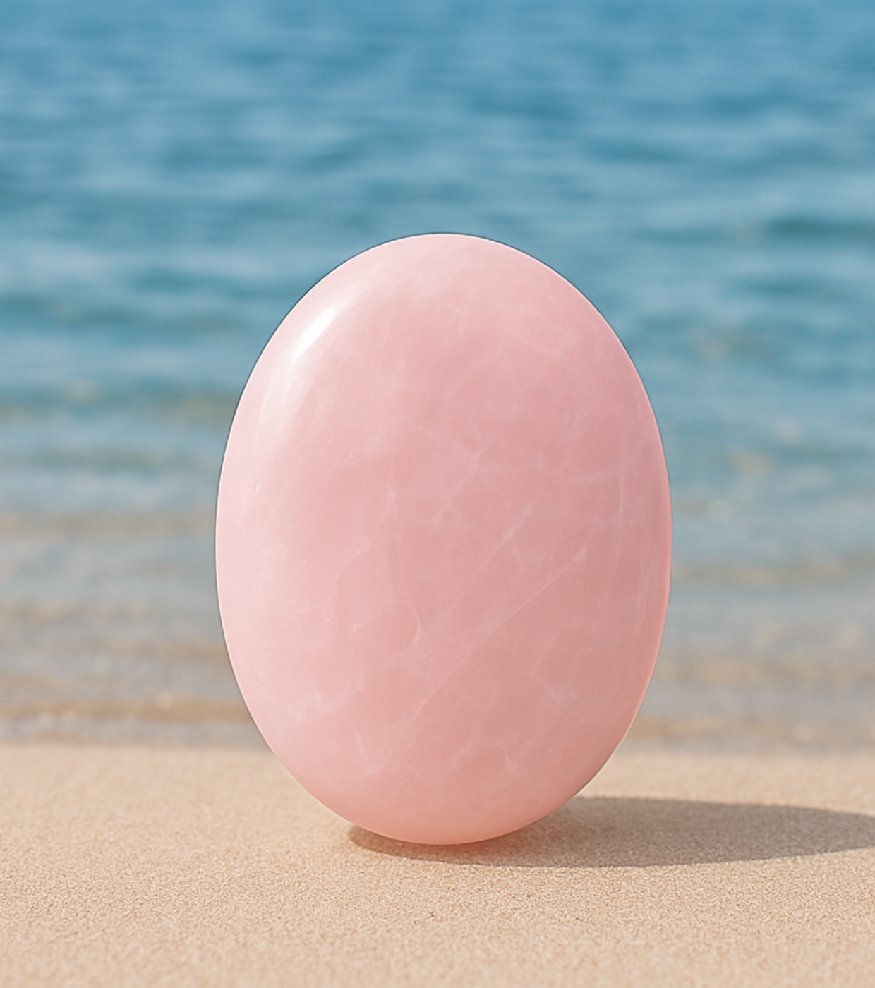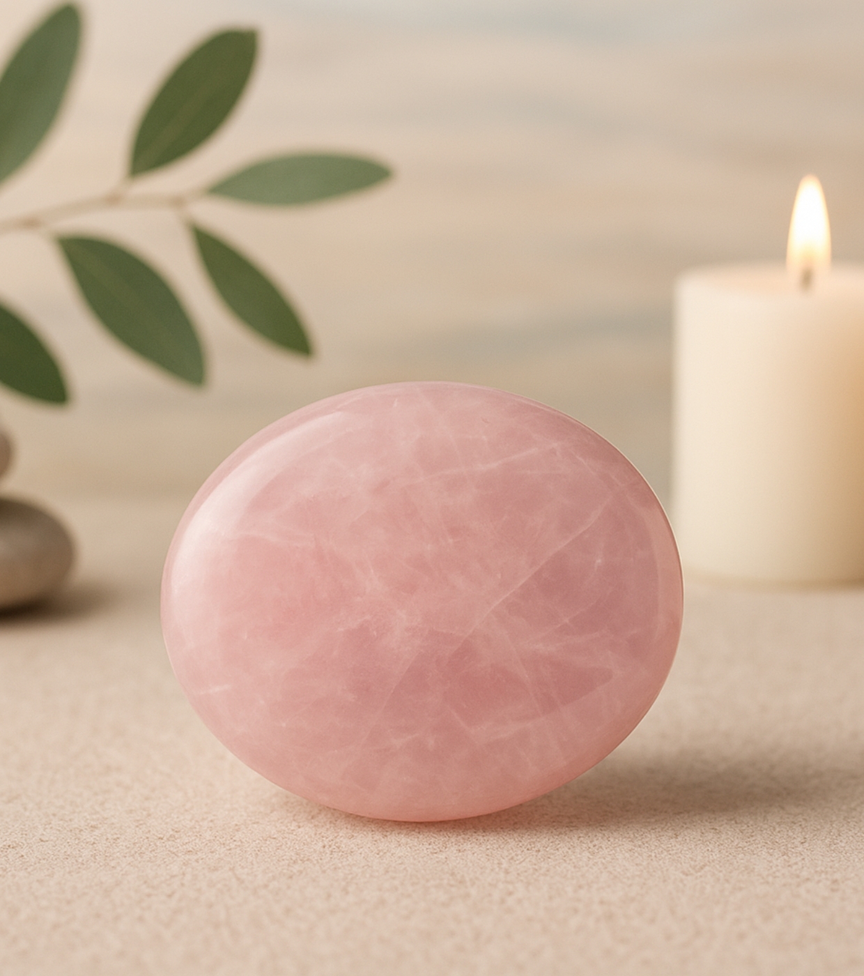 Rosenquarz wird traditionell mit Selbstliebe, innerem Frieden und emotionaler Ruhe in Verbindung gebracht und ist somit ein Symbol für Selbstfürsorge und persönliche Verbundenheit.