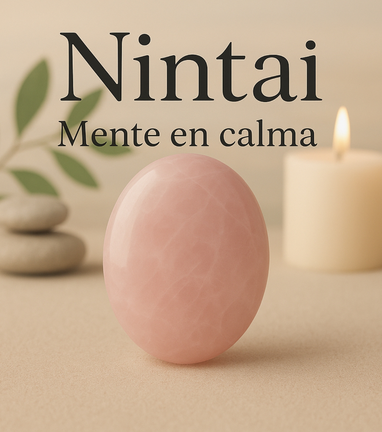 Der handgeschnitzte Rosenquarz Nintai von Diana Piriz verfügt über eine zentrale Rille, die speziell dafür entwickelt wurde, Ihren Finger zu halten.