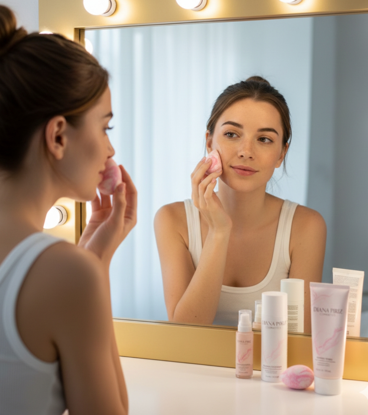 Der Make-up-Schwamm Pink Sakura + sein belüftetes Etui von Diana Piriz ist ein professionelles, latexfreies Werkzeug aus hydrophilem Polyurethan, ideal zum Auftragen von flüssigen, cremigen und pudrigen Produkten.