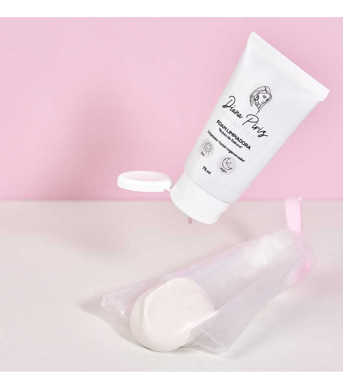 Regenerierender Gesichtsreiniger Nubes de Sakura von Diana Piriz Cosmetics für alle Hauttypen geeignet und für die morgendliche und abendliche Anwendung formuliert.