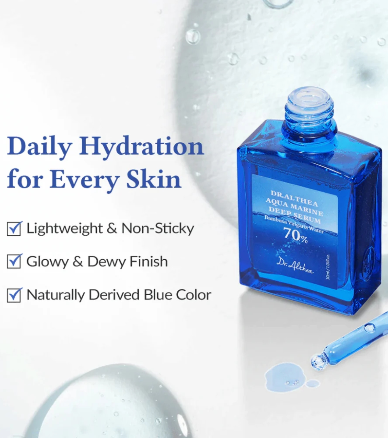 Fühlt sich Ihre Haut trocken und fahl an? Aqua Marine Deep Serum von Dr. Althea ist ein Intensivserum, das intensive Feuchtigkeit spendet und die Haut bereits ab der ersten Anwendung revitalisiert.