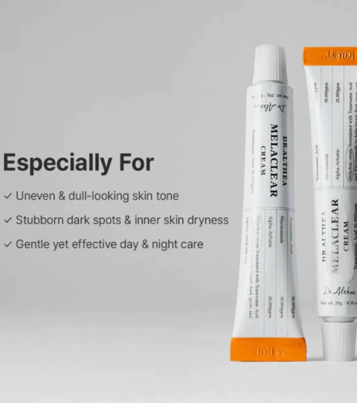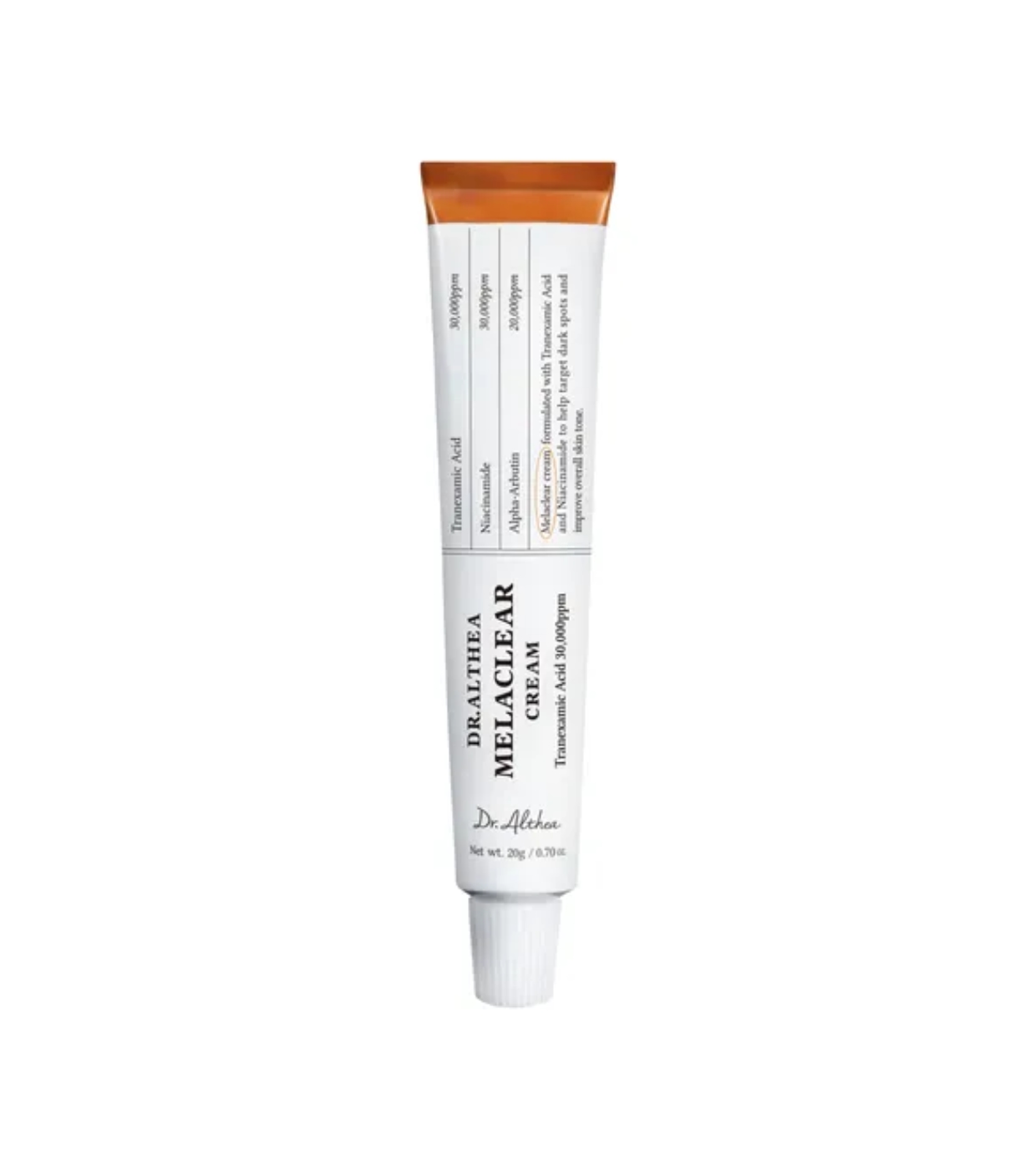 Die Melaclear Creme von Dr. Althea ist eine Depigmentierungsbehandlung, die entwickelt wurde, um Flecken, ungleichmäßigen Hautton und mangelnde Ausstrahlung zu bekämpfen, ohne die Hautbarriere zu beeinträchtigen, selbst bei empfindlicher Haut.