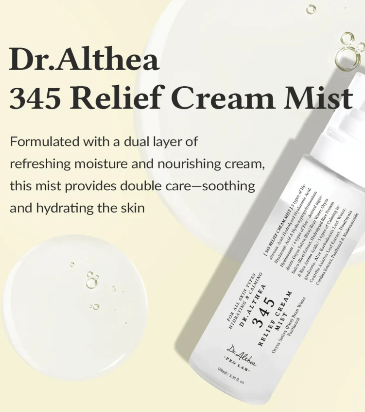Sagen Sie Ja zu strahlender Haut in nur einem Schritt! Dr. Altheas 345 Relief Cream Mist vereint Feuchtigkeit, Beruhigung und sofortige Frische dank seiner innovativen Zwei-Phasen-Formel, die die Haut sofort revitalisiert.