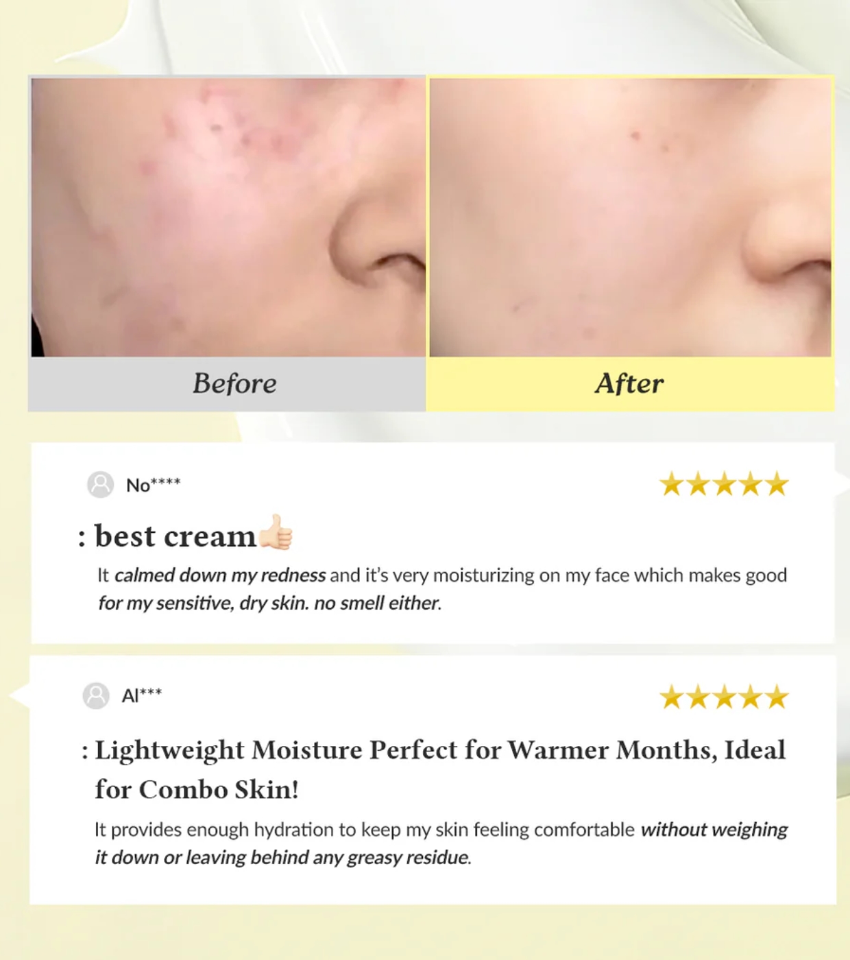 Diese Creme ist ideal für empfindliche, reaktive oder zu Ausbrüchen neigende Haut. Sie hilft, Rötungen zu reduzieren, Reizungen zu lindern und vorzeitiger Hautalterung vorzubeugen und sorgt für glattere, gesünder aussehende Haut.