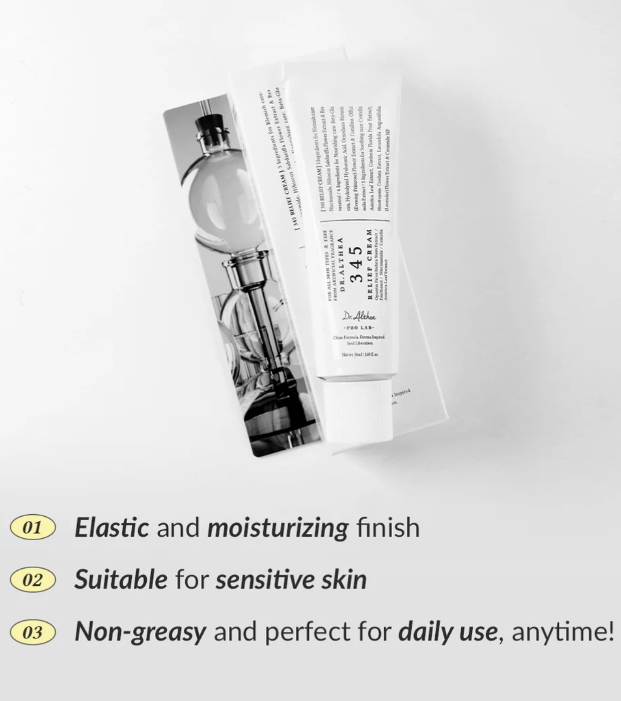 Dr. Althea 345 Relief Cream ist eine Komplettlösung für Haut, die repariert, beruhigt und mit Feuchtigkeit versorgt werden muss, ohne gereizt zu werden. Ideal zur Begleitung von Genesungsprozessen nach Akne oder bei extremer Empfindlichkeit.
