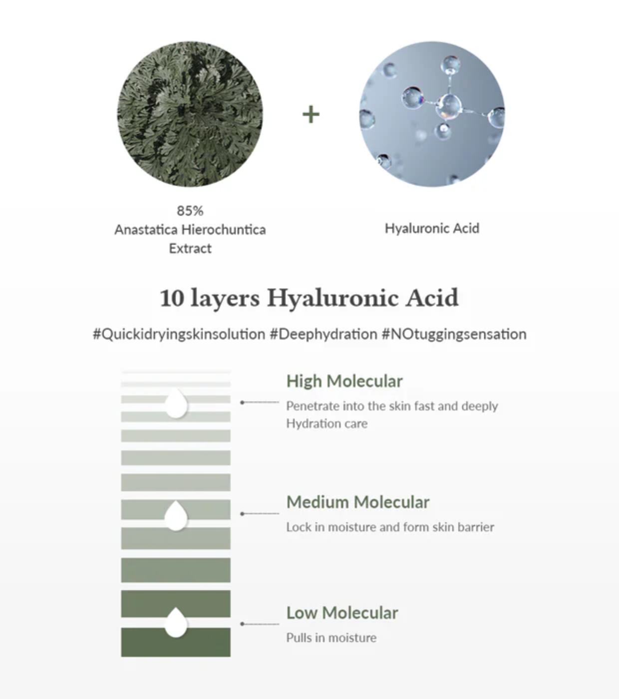 Anastatica Hierochuntica Extract, Water, 1,2-Hexanediol, Butylene Glycol, Glycerin, Dipotassium Glycyrrhizate, Ammonium Acryloyldimethyltaurate/VP Copolymer, Disodium EDTA, Allantoin, Citric Acid, Sodium Citrate, Malt Extract, Adansonia Digitata Seed Extract, Anthemis Nobilis Flower Extract, Opuntia Ficus-Indica Stem Extract, Portulaca Oleracea Extract, Sodium Hyaluronate, Hydroxypropyltrimonium Hyaluronate, Hydrolyzed Hyaluronic Acid, Sodium Acetylated Hyaluronate, Hyaluronic Acid, Hydrolyzed Sodium Hyaluronate, Sodium Hyaluronate Crosspolymer, Potassium Hyaluronate.