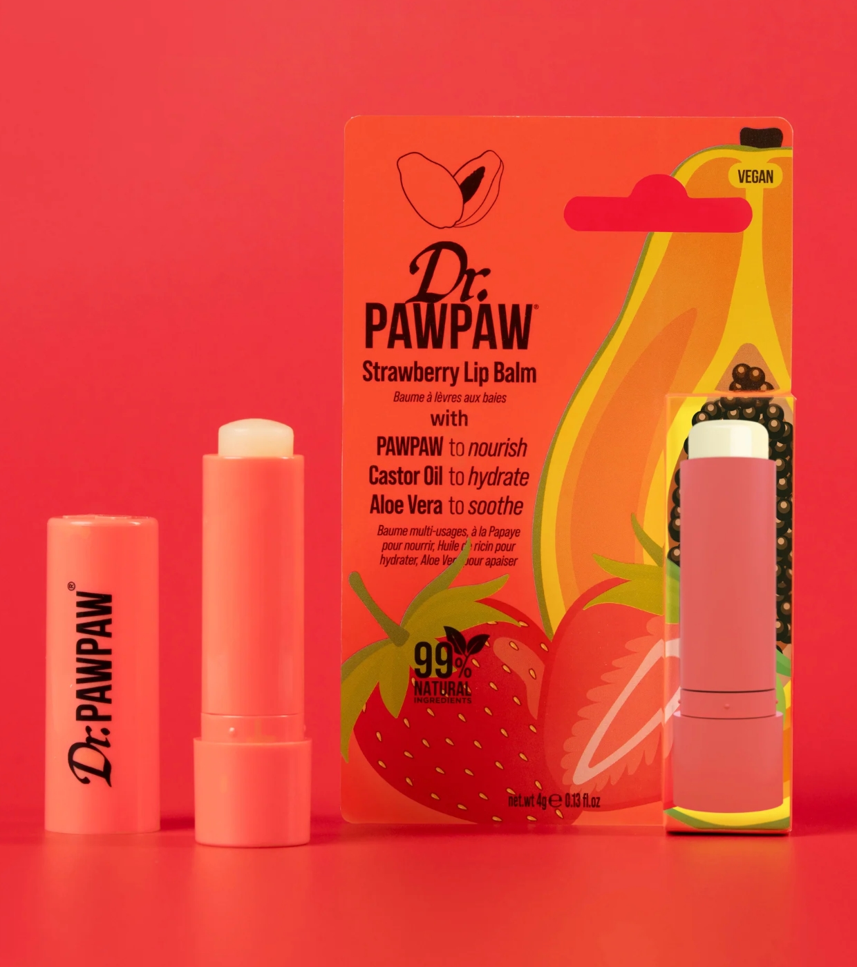 Strawberry Der Erdbeer-Lippenbalsamstift ist so viel mehr als nur eine Feuchtigkeitscreme – er ist ein zu 99 % natürlicher, veganer Wunderbalsam, der Ihre Lippen perfekt pflegt, weich macht und schützt und dabei einen köstlichen, saftigen Erdbeerduft verströmt.