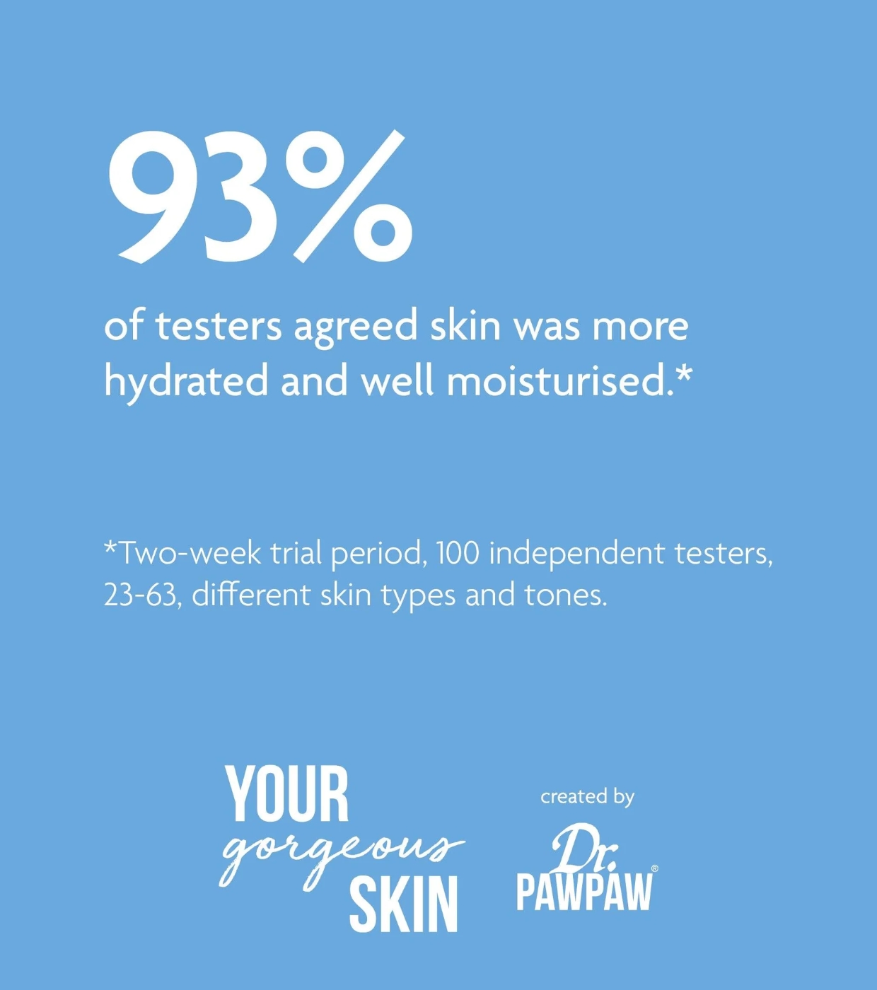 Dr. Paw Paw ist eine leichte, vegane, parfümfreie Formel, die tiefe, langanhaltende Feuchtigkeit spendet, ohne die Poren zu verstopfen.