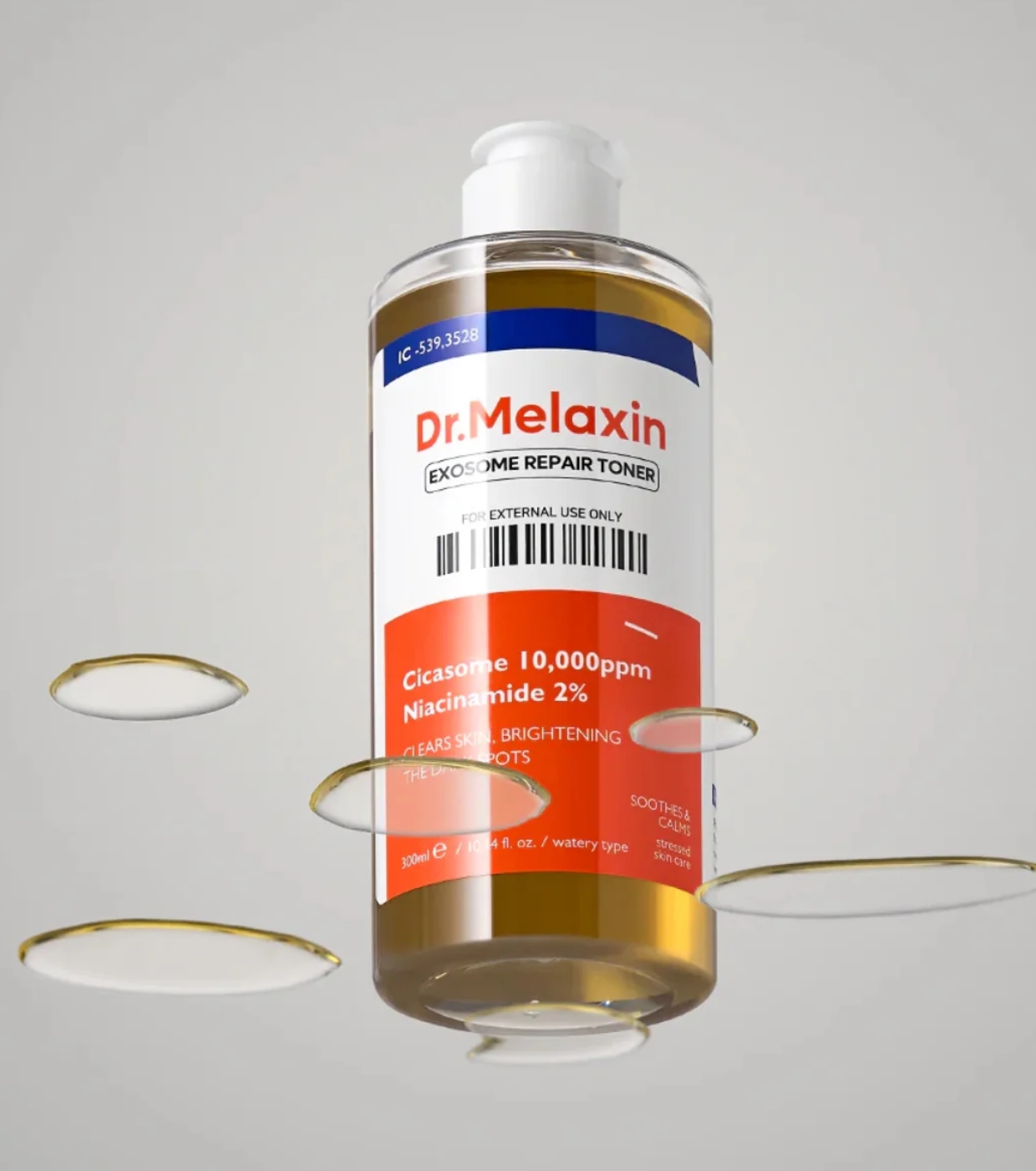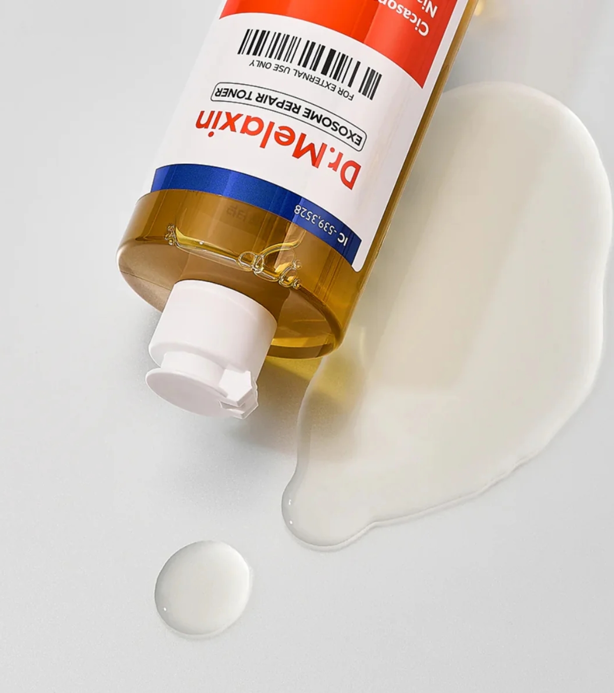Der Exosome Repair Toner von Dr.Melaxin ist ein Gesichtswasser, das die Haut beruhigt, revitalisiert und stärkt und sich besonders für empfindliche oder zu Akne neigende Haut eignet.