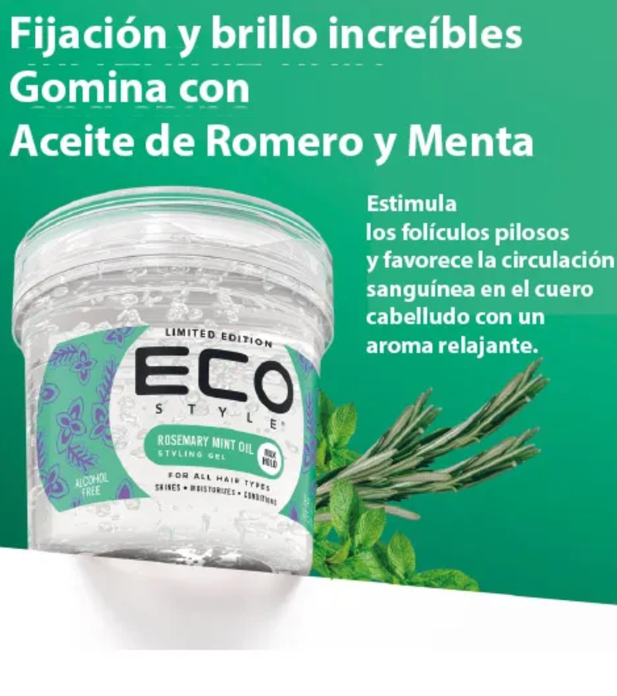 Fixier- und Stylinggel für alle Haartypen Rosemary Mint Oil 236ml von Eco Styler.