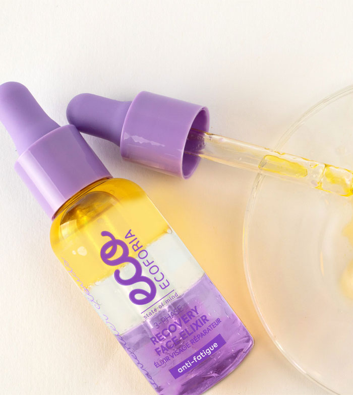Ecoforia Lavender Clouds dreiphasiges reparierendes Elixier für das Gesicht.