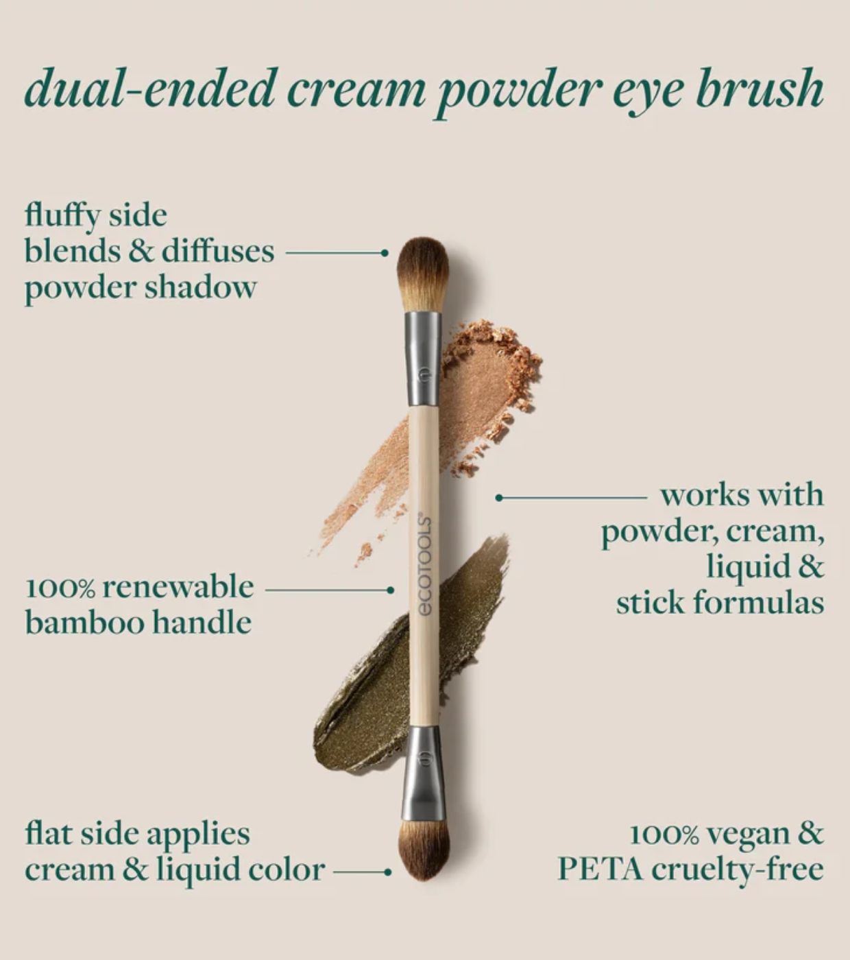 Der Cream & Powder Dual-Ended Pinsel von EcoTools ist ein vielseitiges 2-in-1 Werkzeug, mit dem sich Lidschatten präzise und einfach auftragen und verblenden lassen.