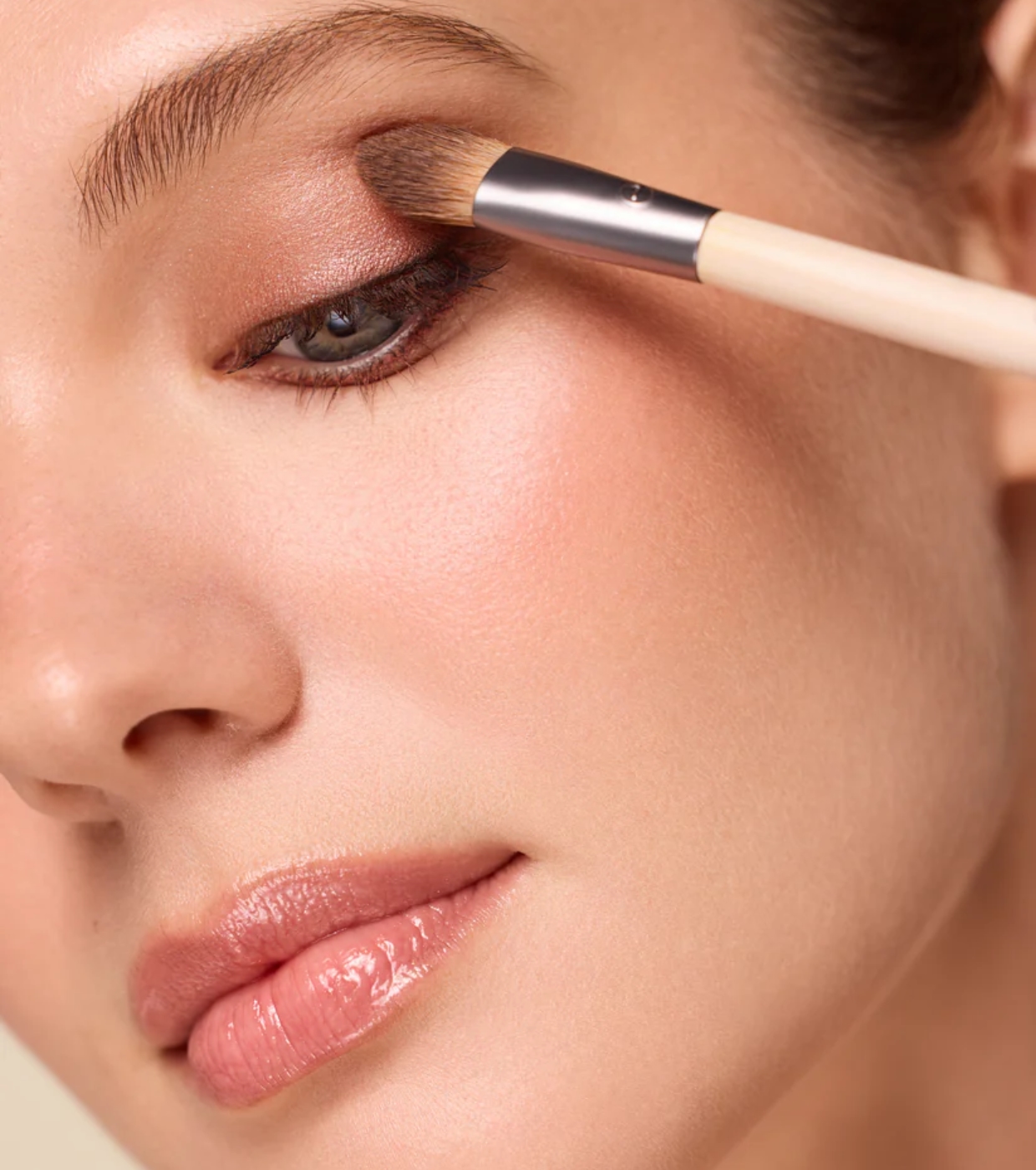 Es hat eine flache Seite, die sich perfekt eignet, um Creme- oder Flüssiglidschatten gleichmäßig auf das Augenlid aufzutragen, und eine lockerere, flauschigere Seite, mit der man Puder- oder Cremelidschatten in der Lidfalte oder an den Rändern verblenden und weicher gestalten kann, um natürliche Übergänge zu erzielen.