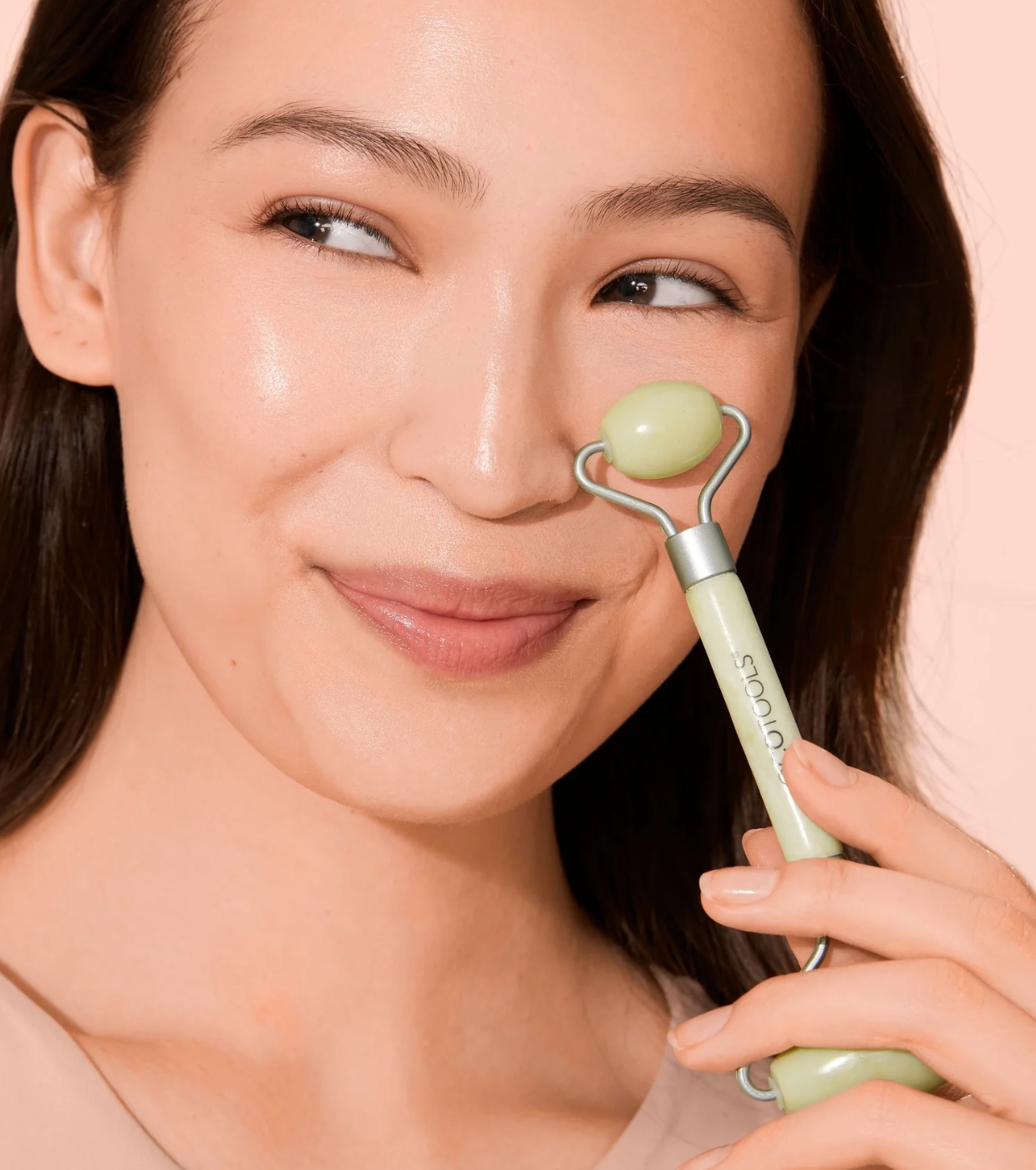 Der Jade Facial Roller hilft dabei, die Konturen Ihres Gesichts zu formen und zu massieren, während der Under-Eye Soother zusammen mit Augencremes Schwellungen reduziert.
