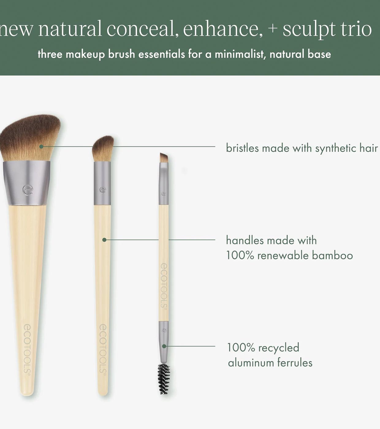 Das Trio EcoTools New Natural Conceal, Enhance, + Sculpt umfasst alle wichtigen Make-up-Pinsel für natürliches Make-up.
