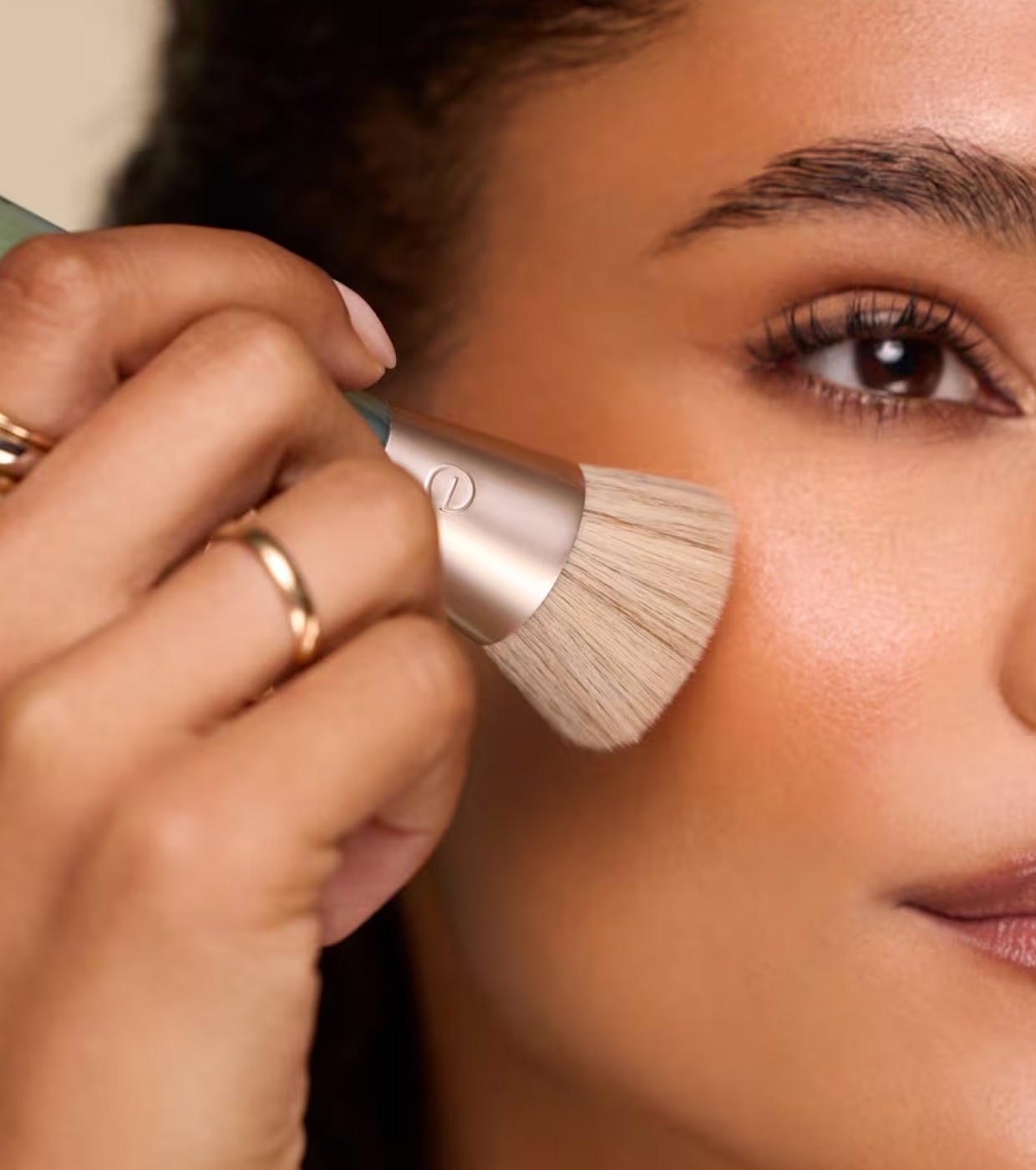 Der kompakte und dichte, speziell zugeschnittene Bürstenkopf ermöglicht eine gleichmäßige Abdeckung und hilft dabei, das Gesicht zu modellieren und zu definieren – für ein glattes, streifenfreies Ergebnis.