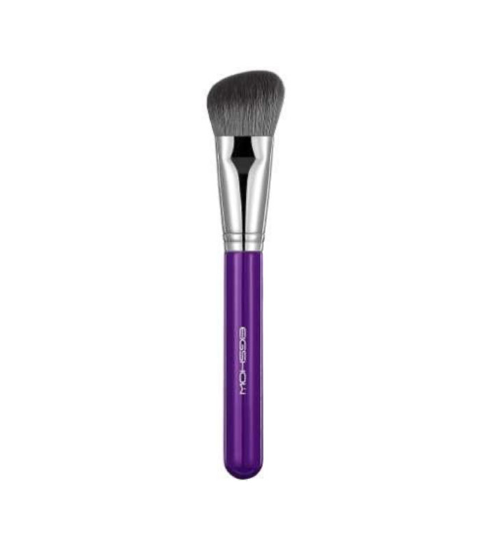 Die abgewinkelten Borsten dieser Konturbürste ermöglichen ein sanftes und flüssiges Auftragen der Produkte in der Gesichtskontur.