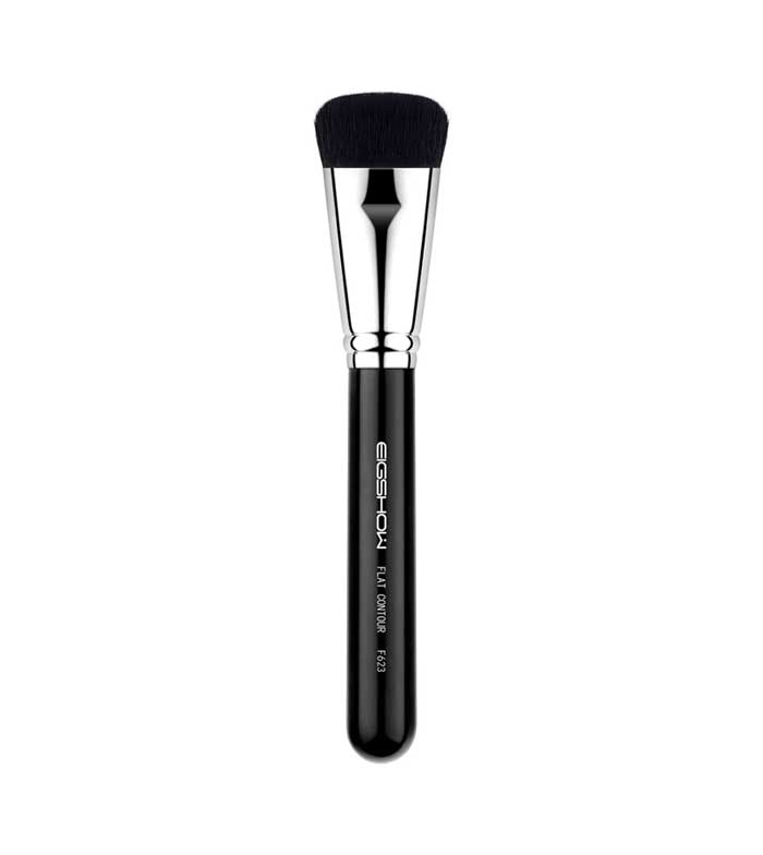 Ein professioneller Konturpinsel mit einem klassischen schwarzen Holzgriff. Die weichen, flachen Borsten sind perfekt und ideal, um ein natürliches Finish zu erzielen und das Gesicht zu konturieren.