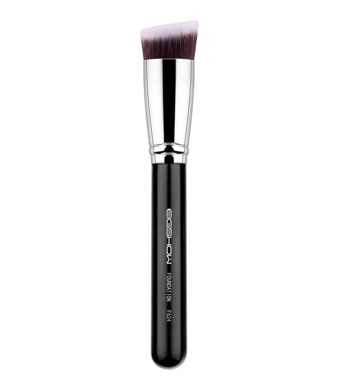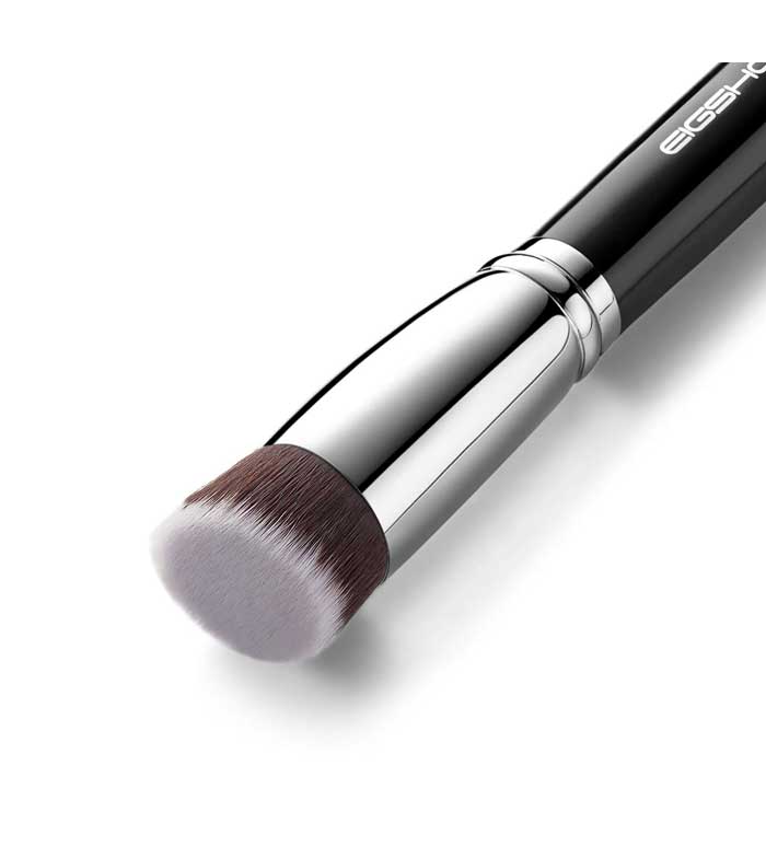 Dieser Pinsel ist ein flacher Kabuki-Pinsel, der für noch einfacheres Auftragen schräg geschnitten ist.