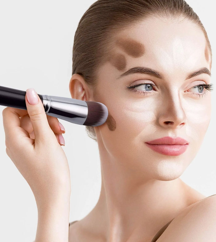 Ideal zum Auftragen auf das Gesicht, passt sich dank abgewinkeltem und flachem Schnitt perfekt der Gesichtsform an.