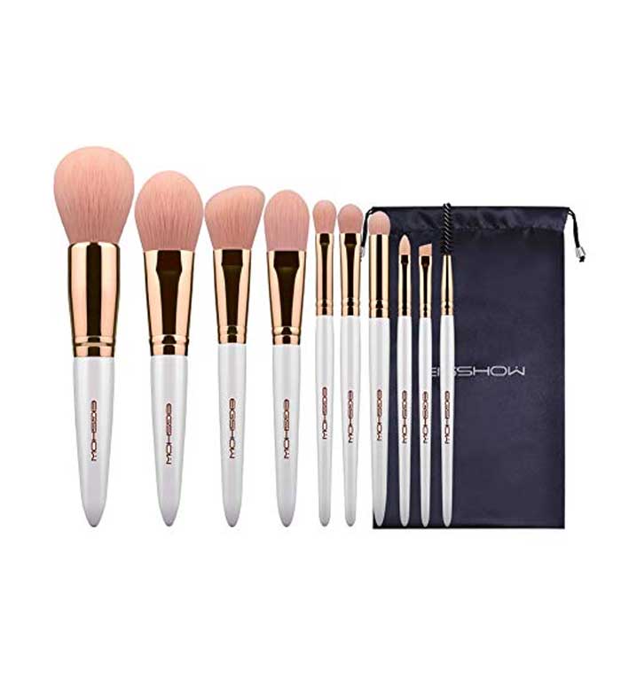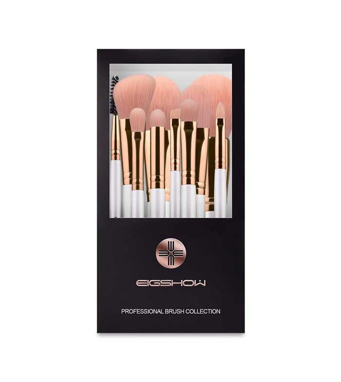 Dieses 10-teilige vegane Bürstenset von Eigshow besteht aus hochwertigen Nanofasern mit champagnergoldfarbenen Griffen.