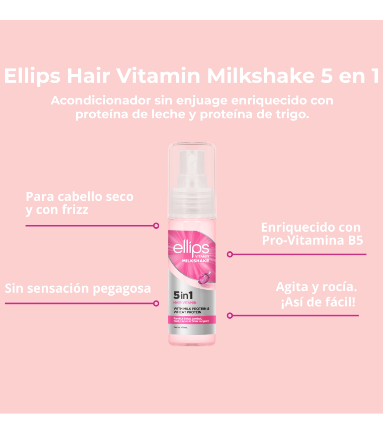 Das Ellips 5in1 Conditioning Spray ist eine praktische tägliche Haarpflegebehandlung, die das Haar mit Feuchtigkeit versorgt, es weich macht und es leichter frisierbar macht, ohne dass es ausgespült werden muss.
