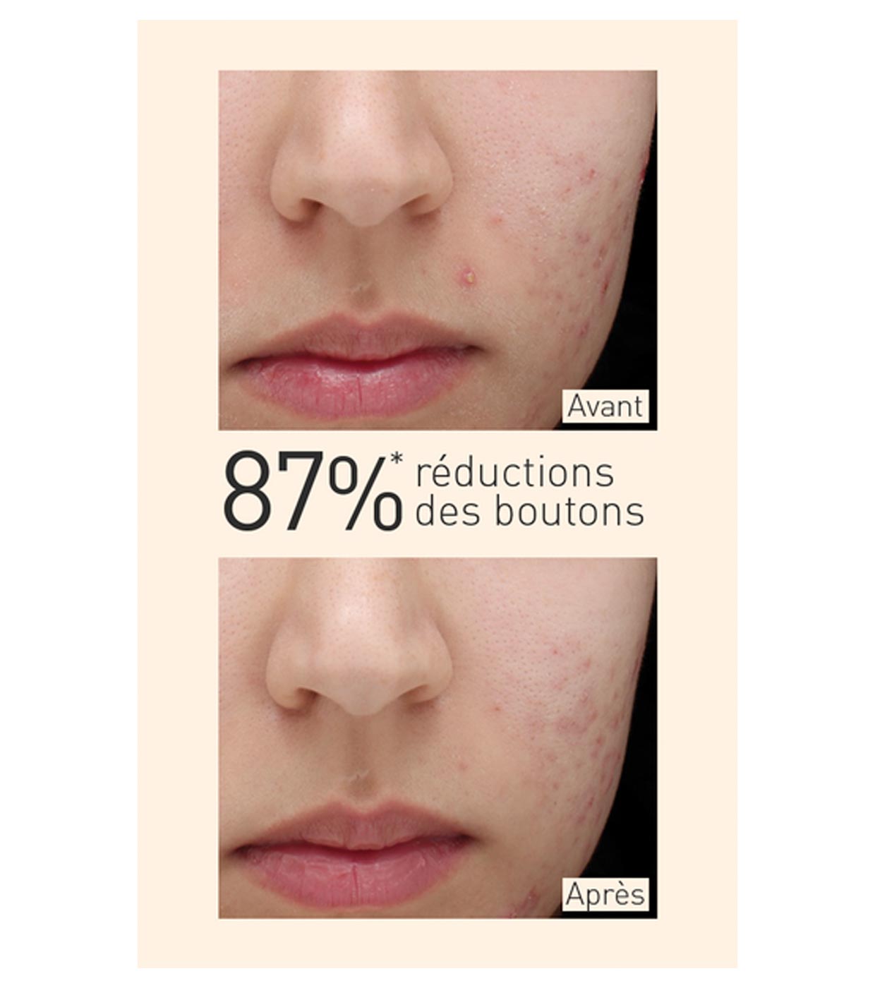 Es handelt sich um eine Behandlung, die sechs verschiedene Arten von Unreinheiten reduziert: Mitesser – Rötungen – Pickel – Mitesser – Flecken – Talg – und die die Hautqualität wiederherstellt und verbessert.