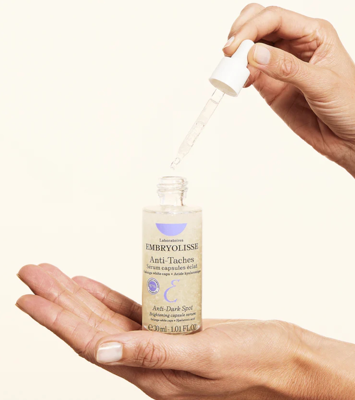 Dieses Serum mit Anti-Pigmentflecken-Kapseln von Embryolisse vereint Innovation, Wirksamkeit und hohe Verträglichkeit auch bei empfindlicher Haut.