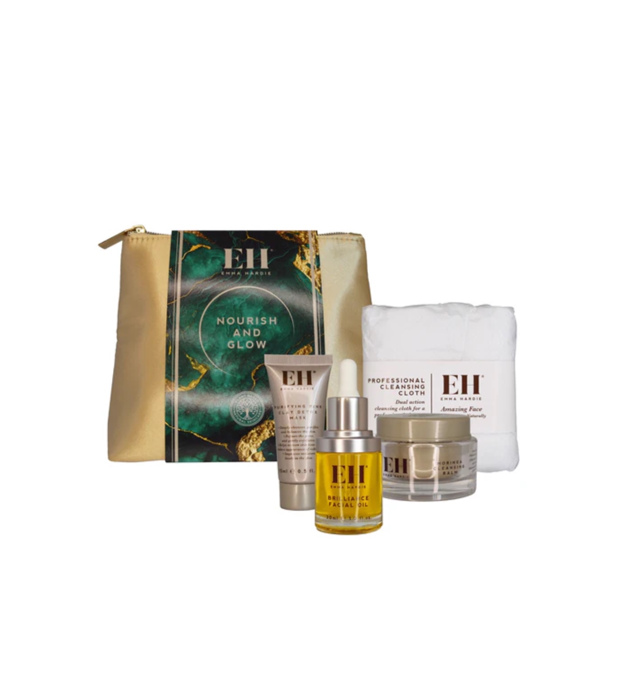 Komplettes Gesichtspflegeset Nourish and Glow von Emma Hardie zur Reinigung, Entschlackung und Pflege Ihrer Haut, entwickelt für eine strahlende und ausgeglichene Haut.