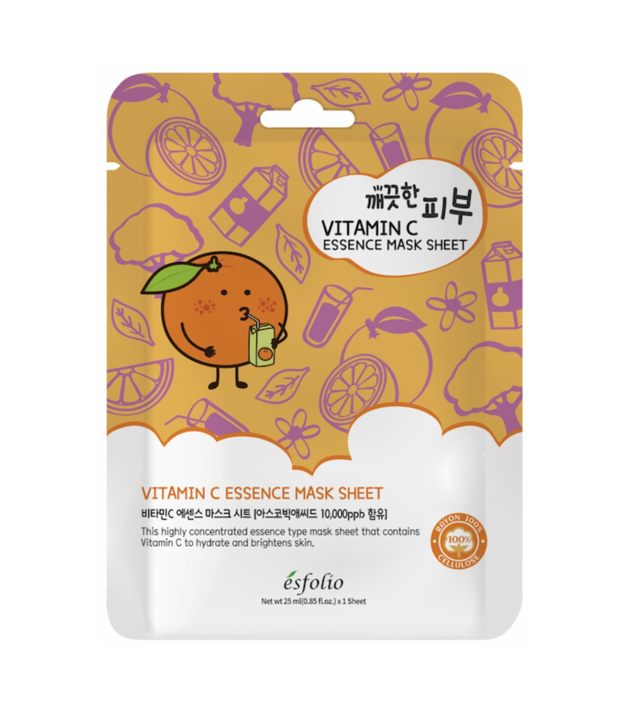 Dieses Pure Skin Essence Mask Sheet von Esfolio enthält natürliche Orangen- und Zitronenextrakte und ist ideal, um empfindliche Haut zu beruhigen, überschüssigen Talg zu kontrollieren, die Hautstruktur zu verbessern und ein erfrischendes und revitalisierendes Gefühl zu vermitteln.