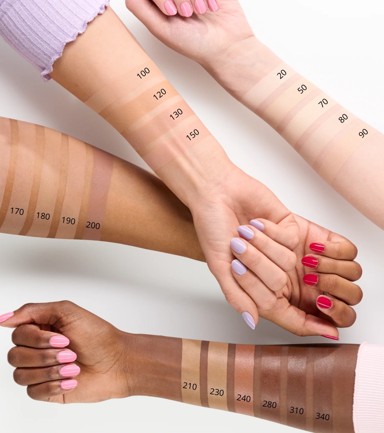 Seine flüssige Textur verschmilzt mit der Haut und seine wasserfeste Formel sorgt für langanhaltendes Make-up den ganzen Tag lang.