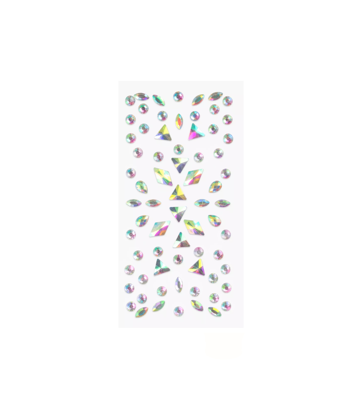 Dieses beeindruckende Set umfasst 65 selbstklebende Steine in verschiedenen Größen und Formen, die jeweils mit einem irisierenden und holografischen Finish versehen sind, das das Licht spektakulär reflektiert.