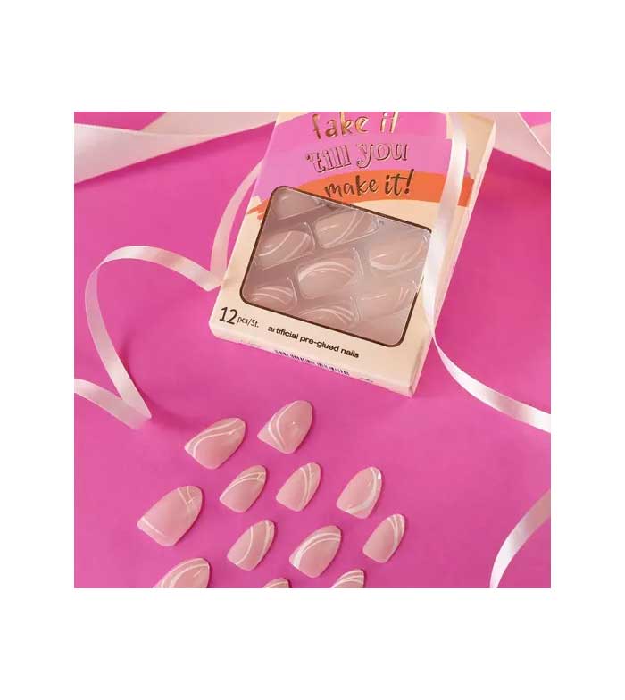 Erhalten Sie in nur wenigen Schritten eine einzigartige und originelle Maniküre mit den künstlichen Nägeln aus der Kollektion Fake it \'till you make it von essence.
