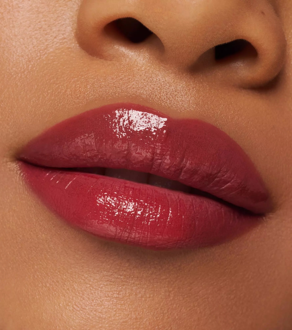 Wenn der Glanz verschwindet, hinterlässt die Textur einen dezenten Farbfleck, der auf den Lippen verbleibt und mit minimalem Aufwand für einen langanhaltenden Look sorgt.