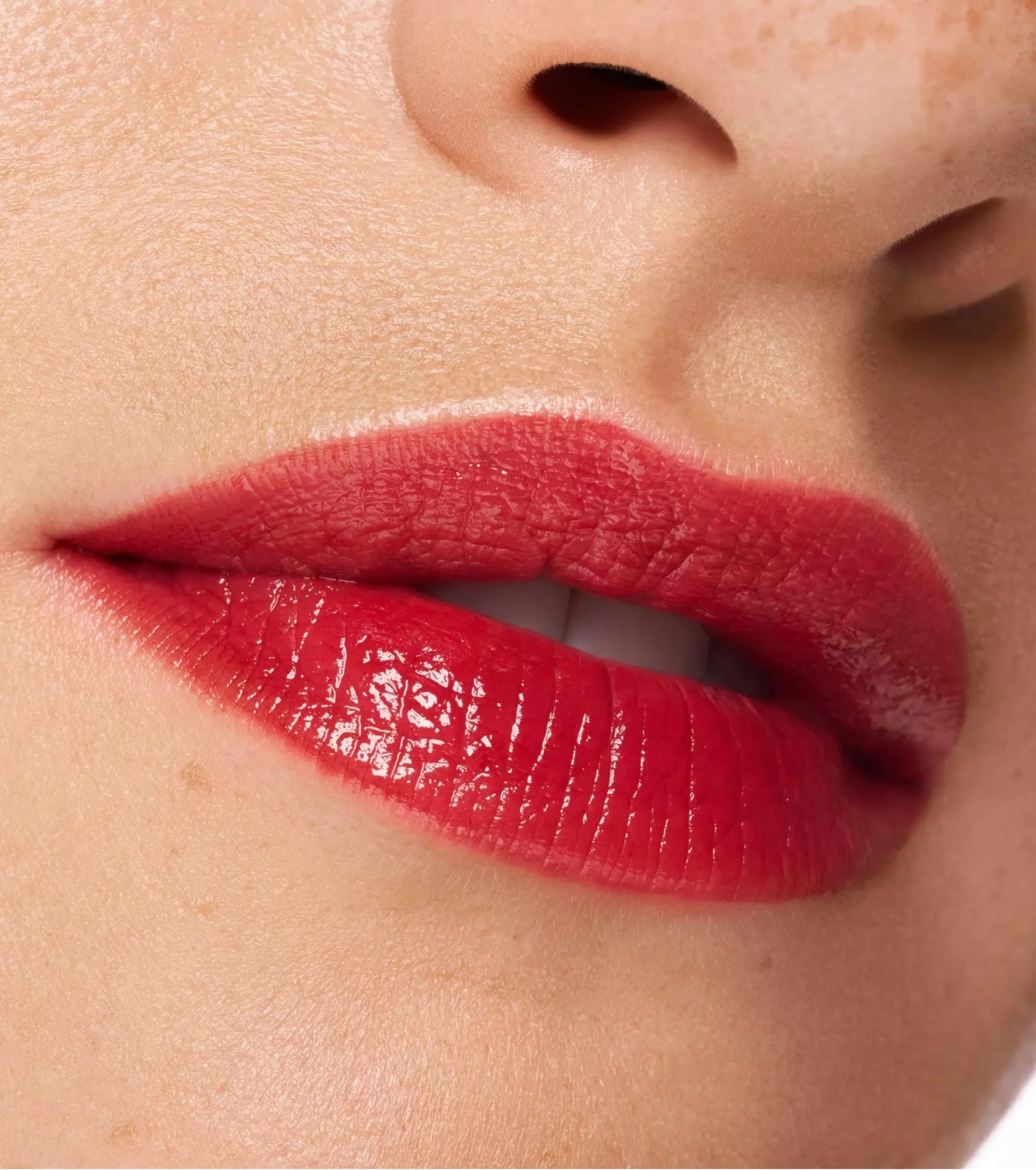 Wenn der Glanz verschwindet, hinterlässt die Textur einen dezenten Farbfleck, der auf den Lippen verbleibt und mit minimalem Aufwand für einen langanhaltenden Look sorgt.